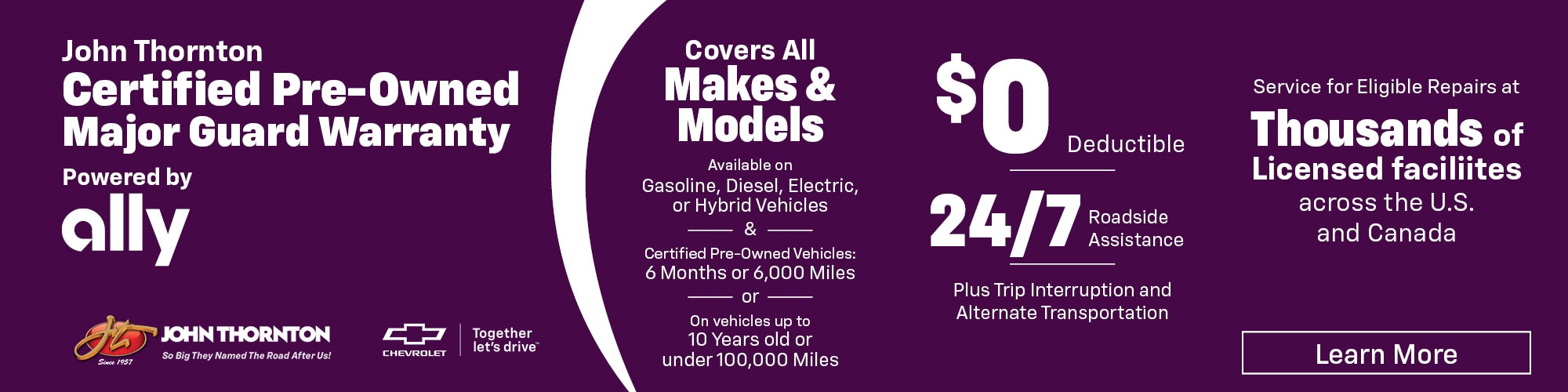 Shop Certified Pre-Owned InventoryWe understand that unexpected vehicle breakdowns happen often resulting in unplanned, expensive repair costs. To help protect you and your budget, we're pleased to include an Ally Certified Pre-Owned 6-Month/6,000-Mile Limited Warranty that features exclusionary coverage with your used vehicle purchase. This means that if a component is not listed, It is covered. Mare good news this full spectrum of coverage will take effect when the manufacturer's new vehicle limited warranty (bumper-to-bumper) expires for in-warranty vehicles. Coverage for out-of-warranty vehicles will take effect at the time of vehicle purchase. It includes the following features and benefits: