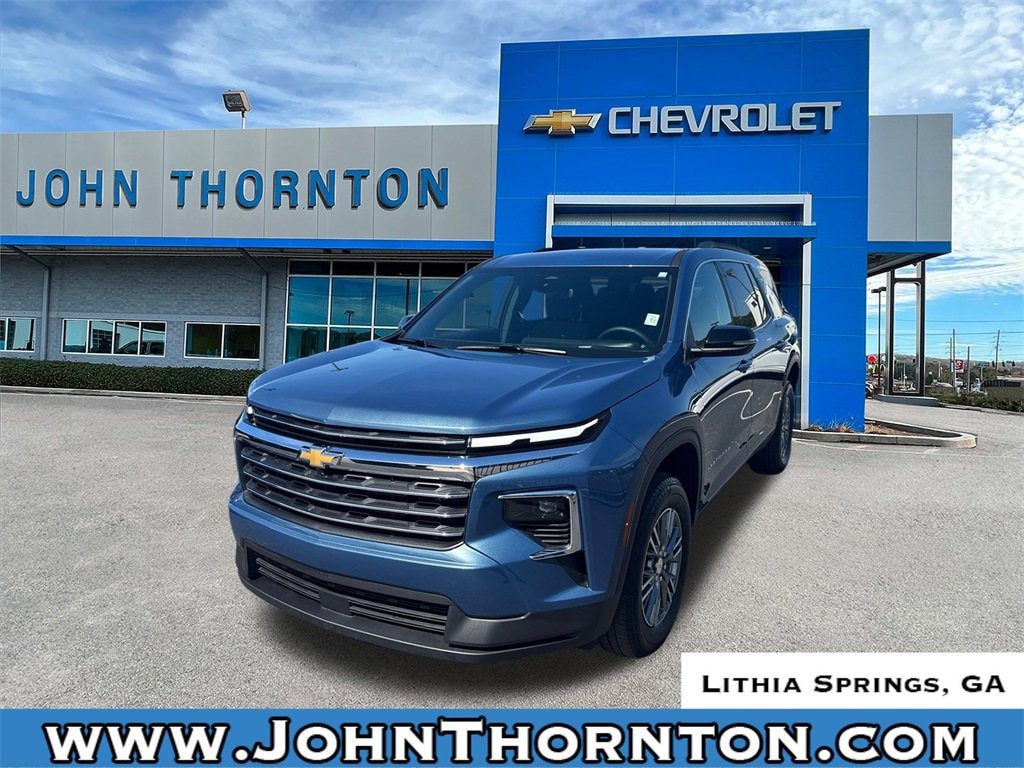 Priced below KBB Fair Purchase Price!Certified. GM Details:* 24 months/24,000 miles (whichever comes first) Certified Pre-Owned Scheduled Maintenance Plan and 3 days/150 miles (whichever comes first) Vehicle Exchange Program. SiriusXM 3-month trial subscription.* Roadside Assistance* Transferable Warranty* Limited Warranty: 12 Month/12,000 Mile (whichever comes first) from certified purchase date* Vehicle History* Warranty Deductible: $0* 172 Point Inspection* Powertrain Limited Warranty: 72 Month/100,000 Mile (whichever comes first) from original in-service dateThank you for considering this beautiful 2025 Chevrolet Traverse LT finished in stunning Lakeshore Blue Metallic with Black Cloth. GO WEST to John Thornton Chevrolet, Celebrating 60 Years, Selling Chevy since 1957! Thank you for your interest in John Thornton Chevrolet! We happily serve Lithia Springs, Douglasville, Smyrna, Marietta, Kennesaw, Viningâs, Atlanta, Dallas, Acworth, Villa Rica and proud to be your Chevrolet Dealer for all of West Georgia by providing quality automotive services and unrivaled customer service. Preferred Equipment Group 1LT, GM Certified, 3rd row seats: split-bench, 4-Way Manual Front Passenger Seat Adjuster, 4-Wheel Disc Brakes, 6 Speakers, 6-Speaker Audio System Feature, 8-Way Power Driver Seat Adjuster, ABS brakes, Air Conditioning, Alloy wheels, AM/FM radio: SiriusXM with 360L, Apple CarPlay/Android Auto, Auto High-beam Headlights, Automatic temperature control, Brake assist, Bumpers: body-color, Child-Seat-Sensing Airbag, Compass, Delay-off headlights, Driver door bin, Driver vanity mirror, Dual front impact airbags, Dual front side impact airbags, Electronic Stability Control, Emergency communication system: OnStar, Four wheel independent suspension, Front anti-roll bar, Front Bucket Seats, Front Center Armrest, Front dual zone A/C, Front reading lights, Fully automatic headlights, Heated door mirrors, Heated front seats, Heated steering wheel, Illuminated entry, Low tire pressure warning, Navigation System, Occupant sensing airbag, Outside temperature display, Overhead airbag, Overhead console, Panic alarm, Passenger door bin, Passenger vanity mirror, Power door mirrors, Power driver seat, Power Liftgate, Power steering, Power windows, Premium Cloth Seat Trim, Radio data system, Radio: Audio System w/17.7 Diagonal Display, Rear air conditioning, Rear anti-roll bar, Rear reading lights, Rear window defroster, Rear window wiper, Remote keyless entry, Security system, SiriusXM w/360L Trial Subscription, Speed control, Speed-sensing steering, Spoiler, Steering wheel mounted audio controls, Tachometer, Telescoping steering wheel, Tilt steering wheel, Traction control, Trip computer, Turn signal indicator mirrors, Variably intermittent wipers, Voltmeter, and Wheels: 18 Grazen Metallic Machined-Face Aluminum.