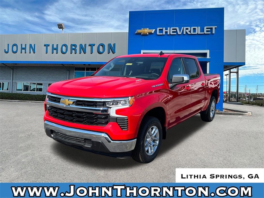 GO WEST to John Thornton Chevrolet, Celebrating 60 Years, Selling Chevy since 1957! Thank you for your interest in John Thornton Chevrolet! We happily serve Lithia Springs, Douglasville, Smyrna, Marietta, Kennesaw, Viningâs, Atlanta, Dallas, Acworth, Villa Rica and proud to be your Chevrolet Dealer for all of West Georgia by providing quality automotive services and unrivaled customer service. Convenience Package (10-Way Power Driver Seat w/Lumbar, 120-Volt Bed Mounted Power Outlet, 120-Volt Interior Power Outlet, Dual Rear USB Ports (Charge Only), Dual-Zone Automatic Climate Control, Heated Driver & Front Outboard Passenger Seats, Heated Steering Wheel, Keyless Open & Start, LED Cargo Area Lighting, Manual Tilt/Telescoping Steering Column, and Wrapped Steering Wheel), Preferred Equipment Group 1LT (12.3 Multicolor Reconfigurable Digital Display, All-Star Edition, Auto-Locking Rear Differential, Bluetooth® For Phone, Chrome Mirror Caps, Color-Keyed Carpeting Floor Covering, Deep-Tinted Glass, Electronic Cruise Control, EZ Lift Power Lock & Release Tailgate, Front Rubberized Vinyl Floor Mats, HD Rear Vision Camera, Heated Power-Adjustable Outside Mirrors, Inside Rear-View Mirror w/Tilt, Integrated Trailer Brake Controller, OnStar Services Capable, Power Front Windows w/Driver Express Up/Down, Power Front Windows w/Passenger Express Down, Power Rear Windows w/Express Down, Rear 60/40 Folding Bench Seat (Folds Up), Rear Rubberized-Vinyl Floor Mats, SiriusXM w/360L Trial Subscription, Standard Tailgate, Steering Wheel Audio Controls, Teen Driver, Tire Pressure Monitoring System, and Wi-Fi Hot Spot Capable), Protection Package (Chevytec Spray-On Black Bedliner and Rear Wheelhouse Liners), Remote Start Package (Electric Rear-Window Defogger, Remote Vehicle Starter System, and Theft Deterrent System (Unauthorized Entry)), Standard Suspension Package, Trailering Package (Hitch Guidance), 8-Speed Automatic, Black Cloth, 220 Amp Alternator, 3.42 Rear Axle Ratio, 4-Wheel Disc Brakes, 40/20/40 Front Split-Bench Seat, 6 Speakers, 6-Speaker Audio System, ABS brakes, Air Conditioning, Alloy wheels, AM/FM radio: SiriusXM with 360L, Apple CarPlay/Android Auto, Auto High-beam Headlights, Automatic Emergency Braking, Automatic temperature control, Brake assist, Bumpers: chrome, Cloth Seat Trim, Compass, Delay-off headlights, Driver door bin, Driver vanity mirror, Dual front impact airbags, Dual front side impact airbags, Electronic Stability Control, Emergency communication system: OnStar, Floor Liners w/Front Removable Carpet Inserts, Floor Liners w/Rear Removable Carpet Inserts, Following Distance Indicator, Forward Collision Alert, Front anti-roll bar, Front Center Armrest w/Storage, Front dual zone A/C, Front License Plate Kit, Front Pedestrian Braking, Front reading lights, Front wheel independent suspension, Fully automatic headlights, Heated door mirrors, Heated front seats, Heated steering wheel, Illuminated entry, IntelliBeam Automatic High Beam On/Off, Lane Keep Assist w/Lane Departure Warning, Low tire pressure warning, Occupant sensing airbag, Outside temperature display, Overhead airbag, Overhead console, Panic alarm, Passenger door bin, Passenger vanity mirror, Power door mirrors, Power driver seat, Power steering, Power windows, Premium audio system: Chevrolet Infotainment 3 Premium, Radio data system, Radio: Chevrolet Infotainment 3 Premium System, Rear reading lights, Rear step bumper, Rear window defroster, Remote keyless entry, Security system, Speed control, Speed-sensing steering, Split folding rear seat, Steering wheel mounted audio controls, Tachometer, Telescoping steering wheel, Tilt steering wheel, Traction control, Trip computer, Variably intermittent wipers, Voltmeter, Wheels: 17 x 8 Bright Silver Painted Aluminum, and Wheels: 18 x 8.5 Bright Silver Painted Aluminum.