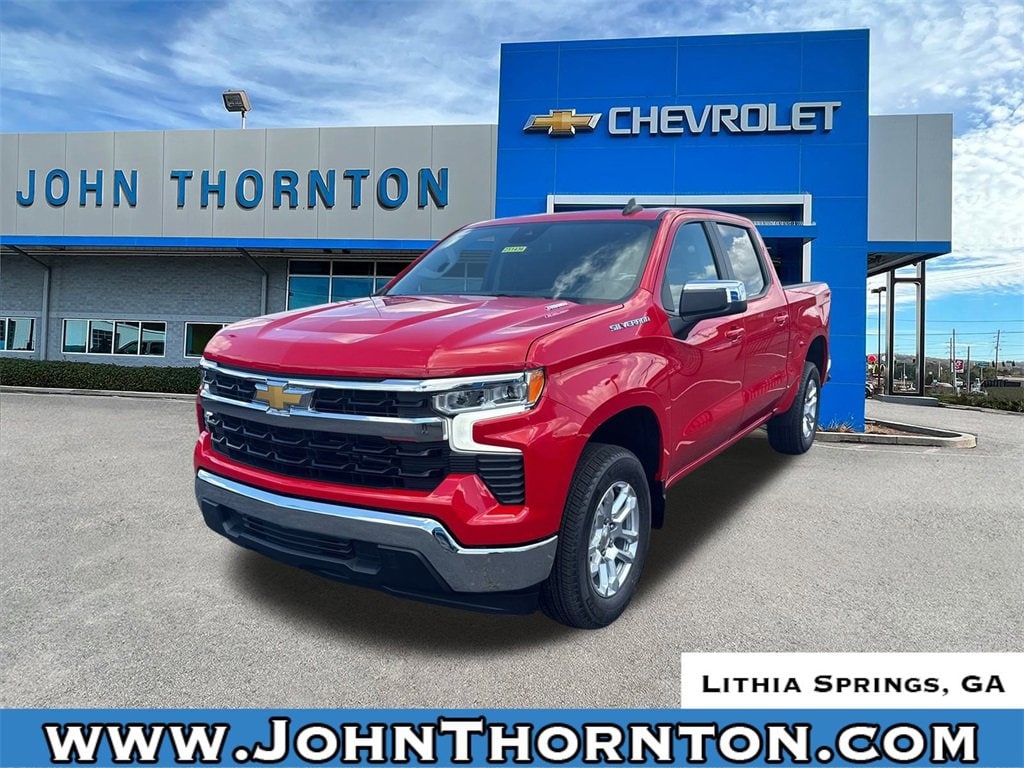 GO WEST to John Thornton Chevrolet, Celebrating 60 Years, Selling Chevy since 1957! Thank you for your interest in John Thornton Chevrolet! We happily serve Lithia Springs, Douglasville, Smyrna, Marietta, Kennesaw, Viningâs, Atlanta, Dallas, Acworth, Villa Rica and proud to be your Chevrolet Dealer for all of West Georgia by providing quality automotive services and unrivaled customer service. Convenience Package (10-Way Power Driver Seat w/Lumbar, 120-Volt Bed Mounted Power Outlet, 120-Volt Interior Power Outlet, Dual Rear USB Ports (Charge Only), Dual-Zone Automatic Climate Control, Heated Driver & Front Outboard Passenger Seats, Heated Steering Wheel, Keyless Open & Start, LED Cargo Area Lighting, Manual Tilt/Telescoping Steering Column, and Wrapped Steering Wheel), Preferred Equipment Group 1LT (12.3 Multicolor Reconfigurable Digital Display, All-Star Edition, Auto-Locking Rear Differential, Bluetooth® For Phone, Chrome Mirror Caps, Color-Keyed Carpeting Floor Covering, Deep-Tinted Glass, Electronic Cruise Control, EZ Lift Power Lock & Release Tailgate, Front Rubberized Vinyl Floor Mats, HD Rear Vision Camera, Heated Power-Adjustable Outside Mirrors, Inside Rear-View Mirror w/Tilt, Integrated Trailer Brake Controller, OnStar Services Capable, Power Front Windows w/Driver Express Up/Down, Power Front Windows w/Passenger Express Down, Power Rear Windows w/Express Down, Rear 60/40 Folding Bench Seat (Folds Up), Rear Rubberized-Vinyl Floor Mats, SiriusXM w/360L Trial Subscription, Standard Tailgate, Steering Wheel Audio Controls, Teen Driver, Tire Pressure Monitoring System, and Wi-Fi Hot Spot Capable), Protection Package (Chevytec Spray-On Black Bedliner and Rear Wheelhouse Liners), Remote Start Package (Electric Rear-Window Defogger, Remote Vehicle Starter System, and Theft Deterrent System (Unauthorized Entry)), Standard Suspension Package, Trailering Package (Hitch Guidance), 8-Speed Automatic, Black Cloth, 220 Amp Alternator, 3.42 Rear Axle Ratio, 4-Wheel Disc Brakes, 40/20/40 Front Split-Bench Seat, 6 Speakers, 6-Speaker Audio System, ABS brakes, Air Conditioning, Alloy wheels, AM/FM radio: SiriusXM with 360L, Apple CarPlay/Android Auto, Auto High-beam Headlights, Automatic Emergency Braking, Automatic temperature control, Brake assist, Bumpers: chrome, Cloth Seat Trim, Compass, Delay-off headlights, Driver door bin, Driver vanity mirror, Dual front impact airbags, Dual front side impact airbags, Electronic Stability Control, Emergency communication system: OnStar, Floor Liners w/Front Removable Carpet Inserts, Floor Liners w/Rear Removable Carpet Inserts, Following Distance Indicator, Forward Collision Alert, Front anti-roll bar, Front Center Armrest w/Storage, Front dual zone A/C, Front License Plate Kit, Front Pedestrian Braking, Front reading lights, Front wheel independent suspension, Fully automatic headlights, Heated door mirrors, Heated front seats, Heated steering wheel, Illuminated entry, IntelliBeam Automatic High Beam On/Off, Lane Keep Assist w/Lane Departure Warning, Low tire pressure warning, Occupant sensing airbag, Outside temperature display, Overhead airbag, Overhead console, Panic alarm, Passenger door bin, Passenger vanity mirror, Power door mirrors, Power driver seat, Power steering, Power windows, Premium audio system: Chevrolet Infotainment 3 Premium, Radio data system, Radio: Chevrolet Infotainment 3 Premium System, Rear reading lights, Rear step bumper, Rear window defroster, Remote keyless entry, Security system, Speed control, Speed-sensing steering, Split folding rear seat, Steering wheel mounted audio controls, Tachometer, Telescoping steering wheel, Tilt steering wheel, Traction control, Trip computer, Variably intermittent wipers, Voltmeter, Wheels: 17 x 8 Bright Silver Painted Aluminum, and Wheels: 18 x 8.5 Bright Silver Painted Aluminum.