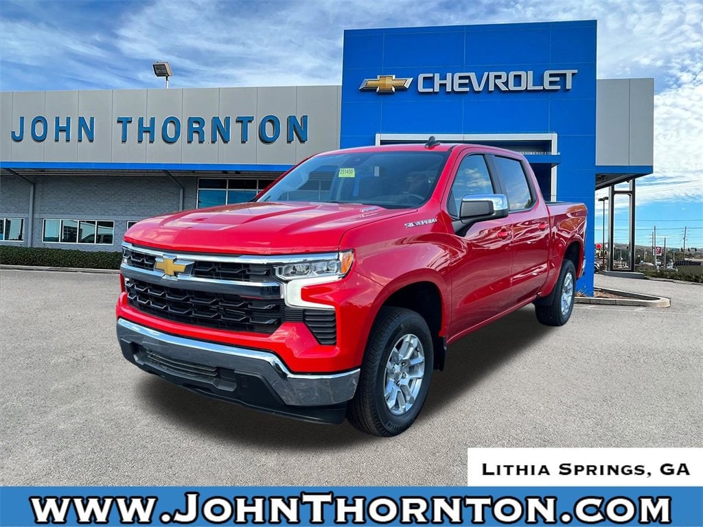 GO WEST to John Thornton Chevrolet, Celebrating 60 Years, Selling Chevy since 1957! Thank you for your interest in John Thornton Chevrolet! We happily serve Lithia Springs, Douglasville, Smyrna, Marietta, Kennesaw, Viningâs, Atlanta, Dallas, Acworth, Villa Rica and proud to be your Chevrolet Dealer for all of West Georgia by providing quality automotive services and unrivaled customer service. Convenience Package (10-Way Power Driver Seat w/Lumbar, 120-Volt Bed Mounted Power Outlet, 120-Volt Interior Power Outlet, Dual Rear USB Ports (Charge Only), Dual-Zone Automatic Climate Control, Heated Driver & Front Outboard Passenger Seats, Heated Steering Wheel, Keyless Open & Start, LED Cargo Area Lighting, Manual Tilt/Telescoping Steering Column, and Wrapped Steering Wheel), Preferred Equipment Group 1LT (12.3 Multicolor Reconfigurable Digital Display, All-Star Edition, Auto-Locking Rear Differential, Bluetooth® For Phone, Chrome Mirror Caps, Color-Keyed Carpeting Floor Covering, Deep-Tinted Glass, Electronic Cruise Control, EZ Lift Power Lock & Release Tailgate, Front Rubberized Vinyl Floor Mats, HD Rear Vision Camera, Heated Power-Adjustable Outside Mirrors, Inside Rear-View Mirror w/Tilt, Integrated Trailer Brake Controller, OnStar Services Capable, Power Front Windows w/Driver Express Up/Down, Power Front Windows w/Passenger Express Down, Power Rear Windows w/Express Down, Rear 60/40 Folding Bench Seat (Folds Up), Rear Rubberized-Vinyl Floor Mats, SiriusXM w/360L Trial Subscription, Standard Tailgate, Steering Wheel Audio Controls, Teen Driver, Tire Pressure Monitoring System, and Wi-Fi Hot Spot Capable), Protection Package (Chevytec Spray-On Black Bedliner and Rear Wheelhouse Liners), Remote Start Package (Electric Rear-Window Defogger, Remote Vehicle Starter System, and Theft Deterrent System (Unauthorized Entry)), Standard Suspension Package, Trailering Package (Hitch Guidance), 8-Speed Automatic, Black Cloth, 220 Amp Alternator, 3.42 Rear Axle Ratio, 4-Wheel Disc Brakes, 40/20/40 Front Split-Bench Seat, 6 Speakers, 6-Speaker Audio System, ABS brakes, Air Conditioning, Alloy wheels, AM/FM radio: SiriusXM with 360L, Apple CarPlay/Android Auto, Auto High-beam Headlights, Automatic Emergency Braking, Automatic temperature control, Brake assist, Bumpers: chrome, Cloth Seat Trim, Compass, Delay-off headlights, Driver door bin, Driver vanity mirror, Dual front impact airbags, Dual front side impact airbags, Electronic Stability Control, Emergency communication system: OnStar, Floor Liners w/Front Removable Carpet Inserts, Floor Liners w/Rear Removable Carpet Inserts, Following Distance Indicator, Forward Collision Alert, Front anti-roll bar, Front Center Armrest w/Storage, Front dual zone A/C, Front License Plate Kit, Front Pedestrian Braking, Front reading lights, Front wheel independent suspension, Fully automatic headlights, Heated door mirrors, Heated front seats, Heated steering wheel, Illuminated entry, IntelliBeam Automatic High Beam On/Off, Lane Keep Assist w/Lane Departure Warning, Low tire pressure warning, Occupant sensing airbag, Outside temperature display, Overhead airbag, Overhead console, Panic alarm, Passenger door bin, Passenger vanity mirror, Power door mirrors, Power driver seat, Power steering, Power windows, Premium audio system: Chevrolet Infotainment 3 Premium, Radio data system, Radio: Chevrolet Infotainment 3 Premium System, Rear reading lights, Rear step bumper, Rear window defroster, Remote keyless entry, Security system, Speed control, Speed-sensing steering, Split folding rear seat, Steering wheel mounted audio controls, Tachometer, Telescoping steering wheel, Tilt steering wheel, Traction control, Trip computer, Variably intermittent wipers, Voltmeter, Wheels: 17 x 8 Bright Silver Painted Aluminum, and Wheels: 18 x 8.5 Bright Silver Painted Aluminum.