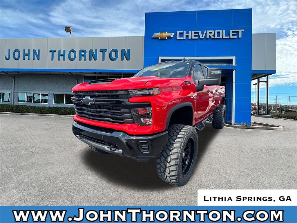 GO WEST to John Thornton Chevrolet, Celebrating 60 Years, Selling Chevy since 1957! Thank you for your interest in John Thornton Chevrolet! We happily serve Lithia Springs, Douglasville, Smyrna, Marietta, Kennesaw, Viningâs, Atlanta, Dallas, Acworth, Villa Rica and proud to be your Chevrolet Dealer for all of West Georgia by providing quality automotive services and unrivaled customer service. Custom Blackout Package (Black Tailgate Lettering (LPO) and Wheels: 20 High Gloss Black Painted), Custom Convenience Package (10-Way Power Driver Seat Adjuster w/Lumbar, 120-Volt Bed Mounted Power Outlet, 120-Volt Interior Power Outlet, Dual Rear USB Ports (Charge Only), Electric Rear-Window Defogger, EZ Lift Power Lock & Release Tailgate, LED Cargo Area Lighting, Remote Vehicle Starter System, and Unauthorized Entry Theft-Deterrent System), Custom Value Package (Auto-Dimming Inside Rear-View Mirror and Heated & Auto-Dimming Vertical Trailering Mirrors), CX Safety Package (Lane Change Alert w/Side Blind Zone Alert, Rear Cross Traffic Alert, and Ultrasonic Front & Rear Park Assist), Preferred Equipment Group 1CX (170 Amp Alternator, 2-Speed Electronic Shift Transfer Case, 3.5 Diagonal Monochromatic Display DIC, Black Mirror Caps, Bluetooth® For Phone, Chevrolet Connected Access Capable, Color-Keyed Carpeting Floor Covering, Compass, Deep-Tinted Glass, Electronic Cruise Control w/Set & Resume Speed, Front Rubberized Vinyl Floor Mats, HD Rear Vision Camera, Heated Vertical Trailering Mirrors, Locking Tailgate, Manual Tailgate Function w/No EZ Lift, Manual Tilt-Wheel Steering Column, OnStar Services Capable, Power Door Locks, Power Front Windows w/Driver Express Up/Down, Power Front Windows w/Passenger Express Down, Power Rear Windows w/Express Down, Push Button Start, Rear 60/40 Folding Bench Seat (Folds Up), Rear Rubberized Vinyl Floor Mats, Remote Keyless Entry, SiriusXM w/360L Trial Subscription, Standard Tailgate, Wi-Fi Hotspot Capable, and Wireless Phone Projection), Suspension Package, Z71 Off-Road Package (Hill Descent Control and Off-Road Suspension), 10-Speed Automatic, 4WD, Jet Black Cloth, 220 Amp Alternator, 4-Wheel Disc Brakes, 4 Round Black Assist Steps (LPO), 5th Wheel & Gooseneck Trailer Wiring Provisions, 6 Speakers, 6-Speaker Audio System, 720 Cold-Cranking Amps Heavy-Duty Battery, ABS brakes, Air Conditioning, Alloy wheels, AM/FM radio: SiriusXM with 360L, Apple CarPlay/Android Auto, Auto High-beam Headlights, Black Chevytec Spray-On Bedliner, Brake assist, Cloth Seat Trim, Delay-off headlights, Driver door bin, Dual front impact airbags, Dual front side impact airbags, Durabed Pickup Bed, Electronic Stability Control, Emergency communication system: OnStar, Engine Block Heater, Exhaust Brake, Front 40/20/40 Split-Bench Seats w/Lockable Storage, Front anti-roll bar, Front Center Armrest w/Storage, Front reading lights, Front wheel independent suspension, Fully automatic headlights, Heated door mirrors, Illuminated entry, LED Smoked Amber Roof Marker Lamps, Low tire pressure warning, Occupant sensing airbag, Outside temperature display, Overhead airbag, Overhead console, Panic alarm, Passenger door bin, Passenger vanity mirror, Power door mirrors, Power steering, Power windows, Premium audio system: Chevrolet Infotainment 3, Radio: Chevrolet Infotainment 3 System, Rear reading lights, Rear step bumper, Remote keyless entry, Speed control, Split folding rear seat, Tachometer, Tilt steering wheel, Traction control, Trip computer, Turn signal indicator mirrors, Variably intermittent wipers, Voltmeter, Wheels: 20 10-Spoke Machined Aluminum, and Winter Grille Cover.