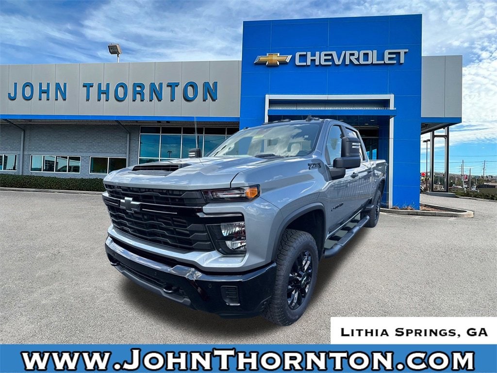 GO WEST to John Thornton Chevrolet, Celebrating 60 Years, Selling Chevy since 1957! Thank you for your interest in John Thornton Chevrolet! We happily serve Lithia Springs, Douglasville, Smyrna, Marietta, Kennesaw, Viningâs, Atlanta, Dallas, Acworth, Villa Rica and proud to be your Chevrolet Dealer for all of West Georgia by providing quality automotive services and unrivaled customer service. Custom Blackout Package (Black Tailgate Lettering (LPO) and Wheels: 20 High Gloss Black Painted), Custom Convenience Package (10-Way Power Driver Seat Adjuster w/Lumbar, 120-Volt Bed Mounted Power Outlet, 120-Volt Interior Power Outlet, Dual Rear USB Ports (Charge Only), Electric Rear-Window Defogger, EZ Lift Power Lock & Release Tailgate, LED Cargo Area Lighting, Remote Vehicle Starter System, and Unauthorized Entry Theft-Deterrent System), Custom Value Package (Auto-Dimming Inside Rear-View Mirror and Heated & Auto-Dimming Vertical Trailering Mirrors), CX Safety Package (Lane Change Alert w/Side Blind Zone Alert, Rear Cross Traffic Alert, and Ultrasonic Front & Rear Park Assist), Gooseneck/5th Wheel Prep Package (Black Chevytec Spray-On Bedliner), Preferred Equipment Group 1CX (170 Amp Alternator, 2-Speed Electronic Shift Transfer Case, 3.5 Diagonal Monochromatic Display DIC, Black Mirror Caps, Bluetooth® For Phone, Chevrolet Connected Access Capable, Color-Keyed Carpeting Floor Covering, Compass, Deep-Tinted Glass, Electronic Cruise Control w/Set & Resume Speed, Front Rubberized Vinyl Floor Mats, HD Rear Vision Camera, Heated Vertical Trailering Mirrors, Locking Tailgate, Manual Tailgate Function w/No EZ Lift, Manual Tilt-Wheel Steering Column, OnStar Services Capable, Power Door Locks, Power Front Windows w/Driver Express Up/Down, Power Front Windows w/Passenger Express Down, Power Rear Windows w/Express Down, Push Button Start, Rear 60/40 Folding Bench Seat (Folds Up), Rear Rubberized Vinyl Floor Mats, Remote Keyless Entry, SiriusXM w/360L Trial Subscription, Standard Tailgate, Wi-Fi Hotspot Capable, and Wireless Phone Projection), Suspension Package, Z71 Off-Road Package (Hill Descent Control and Off-Road Suspension), 10-Speed Automatic, 4WD, Jet Black Cloth, 220 Amp Alternator, 4-Wheel Disc Brakes, 4 Round Black Assist Steps (LPO), 6 Speakers, 6-Speaker Audio System, 720 Cold-Cranking Amps Heavy-Duty Battery, ABS brakes, Air Conditioning, Alloy wheels, AM/FM radio: SiriusXM with 360L, Apple CarPlay/Android Auto, Auto High-beam Headlights, Brake assist, Cloth Seat Trim, Delay-off headlights, Driver door bin, Dual front impact airbags, Dual front side impact airbags, Durabed Pickup Bed, Electronic Stability Control, Emergency communication system: OnStar, Engine Block Heater, Exhaust Brake, Front 40/20/40 Split-Bench Seats w/Lockable Storage, Front anti-roll bar, Front Center Armrest w/Storage, Front reading lights, Front wheel independent suspension, Fully automatic headlights, Heated door mirrors, Illuminated entry, LED Smoked Amber Roof Marker Lamps, Low tire pressure warning, Occupant sensing airbag, Outside temperature display, Overhead airbag, Overhead console, Panic alarm, Passenger door bin, Passenger vanity mirror, Power door mirrors, Power steering, Power windows, Premium audio system: Chevrolet Infotainment 3, Radio: Chevrolet Infotainment 3 System, Rear reading lights, Rear step bumper, Remote keyless entry, Speed control, Split folding rear seat, Tachometer, Tilt steering wheel, Traction control, Trip computer, Turn signal indicator mirrors, Variably intermittent wipers, Voltmeter, Wheels: 20 10-Spoke Machined Aluminum, and Winter Grille Cover.