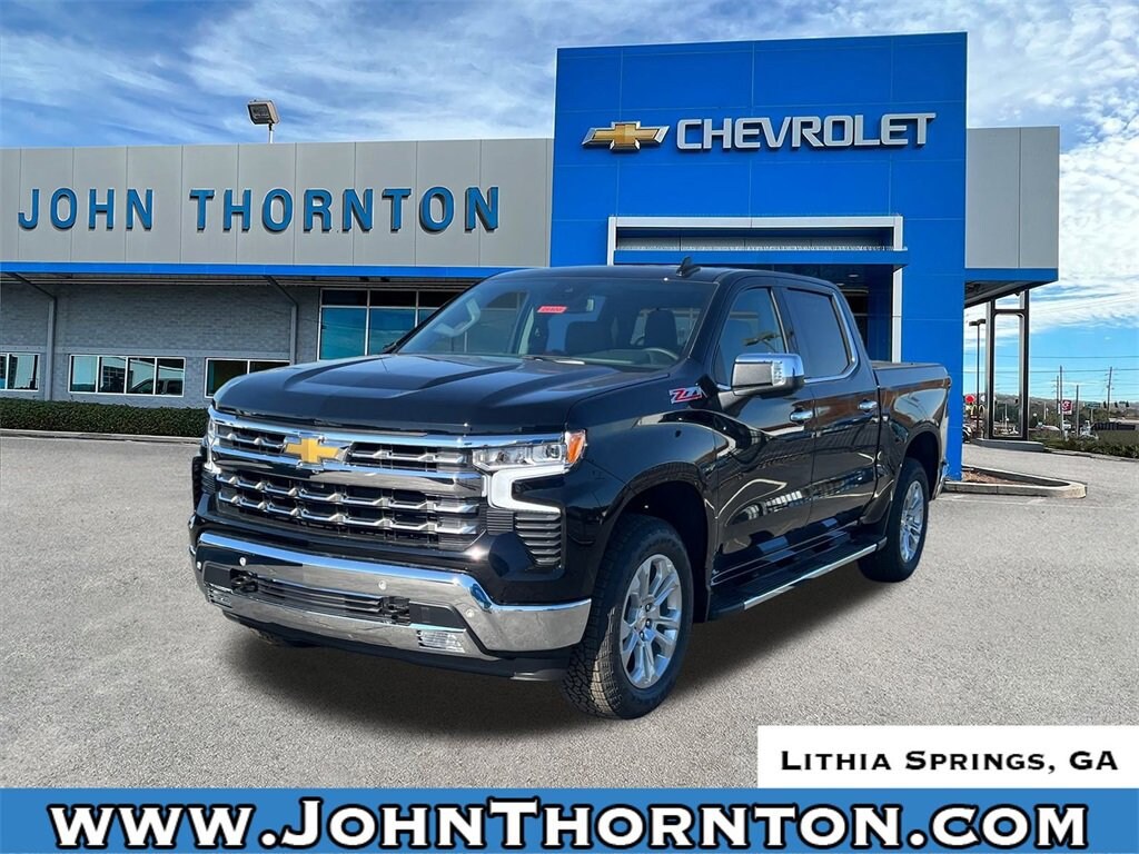 GO WEST to John Thornton Chevrolet, Celebrating 60 Years, Selling Chevy since 1957! Thank you for your interest in John Thornton Chevrolet! We happily serve Lithia Springs, Douglasville, Smyrna, Marietta, Kennesaw, Viningâs, Atlanta, Dallas, Acworth, Villa Rica and proud to be your Chevrolet Dealer for all of West Georgia by providing quality automotive services and unrivaled customer service. High Capacity Suspension Package, LTZ Convenience Package (2 USB Data Ports, Floor Mounted Center Console, Power Tilt & Telescoping Steering Column, Premium Bose 7-Speaker Sound System, Ventilated Driver & Front Passenger Seats, and Wireless Charging), LTZ Convenience Package II (2nd Row Heated Outboard Seats, Adaptive Cruise Control, Power Sliding Rear Window w/Rear Defogger, and Universal Home Remote), LTZ Plus Package, LTZ Premium Package (Power Sunroof), Safety Package (HD Surround Vision, Perimeter Lighting, Rear Cross Traffic Braking, Rear Pedestrian Alert, Safety Alert Seat, Trailer Camera Provisions, Trailer Side Blind Zone Alert, and Ultrasonic Front & Rear Park Assist), Trailering Package (Hitch Guidance), Up-Level Rear Seat w/Storage Package, Z71 Off-Road & Protection Package (All-Weather Floor Liner (LPO) (AAK) and Chevytec Spray-On Black Bedliner), Z71 Off-Road Package (Heavy-Duty Air Filter, Hill Descent Control, and Off-Road Suspension), 10-Speed Automatic, 4WD, Jet Black Leather, 10-Way Power Driver Seat w/Lumbar, 10-Way Power Passenger Seat Adjuster w/Lumbar, 12.3 Multicolor Reconfigurable Digital Display, 120-Volt Bed Mounted Power Outlet, 120-Volt Interior Power Outlet, 170 Amp Alternator, 3.23 Rear Axle Ratio, 4-Wheel Disc Brakes, 7 Speakers, ABS brakes, Air Conditioning, Alloy wheels, AM/FM radio: SiriusXM with 360L, Apple CarPlay/Android Auto, Auto High-beam Headlights, Auto-dimming door mirrors, Auto-Dimming Inside Rear-View Mirror, Auto-dimming Rear-View mirror, Auto-Locking Rear Differential, Automatic Emergency Braking, Automatic temperature control, Bluetooth® For Phone, Brake assist, Bumpers: chrome, Chrome Assist Steps, Chrome Mirror Caps, Color-Keyed Carpeting Floor Covering, Compass, Deep-Tinted Glass, Delay-off headlights, Driver door bin, Driver Memory, Driver vanity mirror, Dual Exhaust w/Polished Outlets, Dual front impact airbags, Dual front side impact airbags, Dual Rear USB Ports (Charge Only), Electric Rear-Window Defogger, Electronic Cruise Control, Electronic Stability Control, Electronic Transmission Range Selector Shifter, Emergency communication system: OnStar, Following Distance Indicator, Forward Collision Alert, Front anti-roll bar, Front Bucket Seats, Front Center Armrest, Front dual zone A/C, Front fog lights, Front Frame-Mounted Black Recovery Hooks, Front LED Fog Lamps, Front Pedestrian Braking, Front Rain-Sensing Wipers, Front reading lights, Front Rubberized Vinyl Floor Mats, Front wheel independent suspension, Fully automatic headlights, Heated door mirrors, Heated Driver & Front Outboard Passenger Seats, Heated front seats, Heated Steering Wheel, Heated steering wheel, Hitch Guidance w/Hitch View, Illuminated entry, In-Vehicle Trailering System App, Integrated Trailer Brake Controller, IntelliBeam Automatic High Beam On/Off, Keyless Open & Start, Lane Keep Assist w/Lane Departure Warning, LED Cargo Area Lighting, Low tire pressure warning, Memory seat, Multi-Flex Tailgate, Occupant sensing airbag, OnStar Services Capable, Outside Heated Power-Adjustable Mirrors, Outside temperature display, Overhead airbag, Overhead console, Panic alarm, Passenger door bin, Passenger vanity mirror, Perforated Leather-Appointed Front Seat Trim, Power door mirrors, Power driver seat, Power Front Passenger Windows w/Express Up/Down, Power Front Windows w/Driver Express Up/Down, Power passenger seat, Power Rear Windows w/Express Down, Power steering, Power Tailgate, Power windows, Premium audio system: Chevrolet Infotai