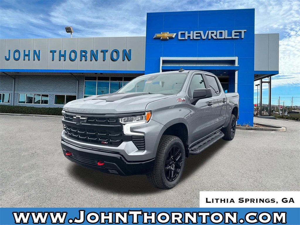 GO WEST to John Thornton Chevrolet, Celebrating 60 Years, Selling Chevy since 1957! Thank you for your interest in John Thornton Chevrolet! We happily serve Lithia Springs, Douglasville, Smyrna, Marietta, Kennesaw, Viningâs, Atlanta, Dallas, Acworth, Villa Rica and proud to be your Chevrolet Dealer for all of West Georgia by providing quality automotive services and unrivaled customer service. Convenience Package (10-Way Power Driver Seat w/Lumbar, 120-Volt Bed Mounted Power Outlet, 120-Volt Interior Power Outlet, Dual Rear USB Ports (Charge Only), Dual-Zone Automatic Climate Control, Electric Rear-Window Defogger, Heated Driver & Front Outboard Passenger Seats, Heated Steering Wheel, Keyless Open & Start, LED Cargo Area Lighting, Manual Tilt/Telescoping Steering Column, Remote Vehicle Starter System, Theft Deterrent System (Unauthorized Entry), and Wrapped Steering Wheel), Convenience Package II (Hitch Guidance w/Hitch View, In-Vehicle Trailering System App, Power Sliding Rear Window w/Rear Defogger, Premium Bose 7-Speaker Sound System, and Universal Home Remote), Leather Package (Leather-Appointed Front Seat Trim), Preferred Equipment Group 2LT (12.3 Multicolor Reconfigurable Digital Display, 6-Speaker Audio System, All-Weather Floor Liner (LPO) (AAK), Auto-Locking Rear Differential, Bluetooth® For Phone, Color-Keyed Carpeting Floor Covering, Deep-Tinted Glass, Electronic Cruise Control, EZ Lift Power Lock & Release Tailgate, Front LED Fog Lamps, HD Rear Vision Camera, Heated Power-Adjustable Outside Mirrors, High Gloss Black Mirror Caps, Inside Rear-View Mirror w/Tilt, Integrated Trailer Brake Controller, OnStar Services Capable, Performance Red Recovery Hooks, Power Front Windows w/Driver Express Up/Down, Power Front Windows w/Passenger Express Down, Power Rear Windows w/Express Down, Rear 60/40 Folding Bench Seat (Folds Up), SiriusXM w/360L Trial Subscription, Standard Tailgate, Steering Wheel Audio Controls, Teen Driver, Tire Pressure Monitoring System, and Wi-Fi Hot Spot Capable), Protection Package (Chevytec Spray-On Black Bedliner and Rear Wheelhouse Liners), Suspension Package (Heavy-Duty Air Filter and Hill Descent Control), Trailering Package (Hitch Guidance), Up-Level Rear Seat w/Storage Package, 10-Speed Automatic, 4WD, Jet Black Leather, 170 Amp Alternator, 2 USB Data Ports, 220 Amp Alternator, 4-Wheel Disc Brakes, 40/20/40 Front Split-Bench Seat, 6 Speakers, ABS brakes, Air Conditioning, Alloy wheels, AM/FM radio: SiriusXM with 360L, Apple CarPlay/Android Auto, Auto High-beam Headlights, Automatic Emergency Braking, Automatic temperature control, Auxiliary External Transmission Oil Cooler, Brake assist, Cloth Seat Trim, Compass, Delay-off headlights, Driver door bin, Driver vanity mirror, Dual Exhaust w/Polished Outlets, Dual front impact airbags, Dual front side impact airbags, Electronic Stability Control, Electronic Transmission Range Selector Shifter, Emergency communication system: OnStar, External Engine Oil Cooler, Floor Mounted Center Console, Following Distance Indicator, Forward Collision Alert, Front anti-roll bar, Front Bucket Seats, Front Center Armrest w/Storage, Front dual zone A/C, Front fog lights, Front Pedestrian Braking, Front reading lights, Front wheel independent suspension, Fully automatic headlights, Heated door mirrors, Heated front seats, Heated steering wheel, Illuminated entry, IntelliBeam Automatic High Beam On/Off, Lane Keep Assist w/Lane Departure Warning, Low tire pressure warning, Multi-Flex Tailgate, Occupant sensing airbag, Off-Road Assist Steps (LPO), Outside temperature display, Overhead airbag, Overhead console, Panic alarm, Passenger door bin, Passenger vanity mirror, Power door mirrors, Power driver seat, Power steering, Power windows, Premium audio system: Chevrolet Infotainment 3 Premium, Radio data system, Radio: Chevrolet Infotainment 3 Premium System, Rear reading lights, Rear step