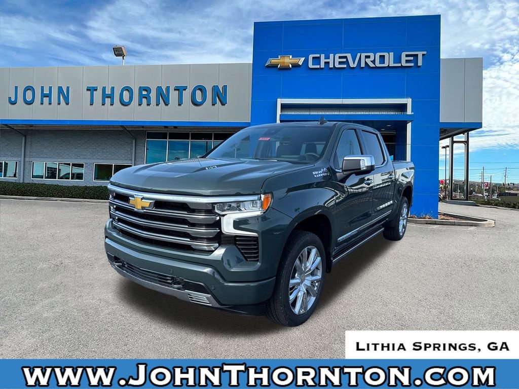 GO WEST to John Thornton Chevrolet, Celebrating 60 Years, Selling Chevy since 1957! Thank you for your interest in John Thornton Chevrolet! We happily serve Lithia Springs, Douglasville, Smyrna, Marietta, Kennesaw, Viningâs, Atlanta, Dallas, Acworth, Villa Rica and proud to be your Chevrolet Dealer for all of West Georgia by providing quality automotive services and unrivaled customer service. High Capacity Suspension Package, High Country Premium II Super Cruise Package (Power-Retractable Assist Steps, Sport Wrapped Steering Wheel, and Super Cruise), High Country Premium Package (Power Sunroof and Wheels: 22 x 9 Painted Aluminum), Preferred Equipment Group 3LZ (10-Way Power Driver Seat with Lumbar, 10-Way Power Passenger Seat Adjuster with Lumbar, 12.3 Multicolor Reconfigurable Digital Display, 120-Volt Bed Mounted Power Outlet, 120-Volt Interior Power Outlet, 2 USB Data Ports, 2nd Row Heated Outboard Seats, Adaptive Cruise Control, Auto-Dimming Inside Rear-View Mirror, Auto-Locking Rear Differential, Bed View Camera, Bluetooth® For Phone, Chevytec Spray-on Black Bedliner, Chrome Assist Steps, Chrome Recovery Hooks, Color-Keyed Carpeting Floor Covering, Deep-Tinted Glass, Driver Memory, Dual Exhaust with Polished Outlets, Dual Rear USB Ports (charge Only), Electric Rear-Window Defogger, Floor Mounted Center Console, Front Bucket Seats, Front Carpeted Floor Mats, Front LED Fog Lamps, Front Rain-Sensing Wipers, Galvano Silver Painted Mirror Caps, HD Surround Vision, Heated Driver and Front Outboard Passenger Seats, Heated Steering Wheel, Hitch Guidance with Hitch View, in-Vehicle Trailering System App, Integrated Trailer Brake Controller, Keyless Open and Start, LED Cargo Area Lighting, OnStar Services Capable, Outside Heated Power-Adjustable Mirrors, Perforated Leather Seat Trim, Perimeter Lighting, Power Front Passenger Windows with Express Up/Down, Power Front Windows with Driver Express Up/Down, Power Rear Windows with Express Down, Power Sliding Rear Window with Rear Defogger, Power Tailgate, Power Tilt and Telescoping Steering Column, Rear Carpeted Floor Mats, Rear Cross Traffic Braking, Rear Pedestrian Alert, Rear Wheelhouse Liners, Remote Vehicle Starter System, Safety Alert Seat, SiriusXM with 360L Trial Subscription, Standard Tailgate, Steering Wheel Audio Controls, Teen Driver, Theft Deterrent System (unauthorized Entry), Tire Pressure Monitoring System, Trailer Camera Provisions, Trailer Side Blind Zone Alert, Ultrasonic Front and Rear Park Assist, Universal Home Remote, Ventilated Driver and Front Passenger Seats, Wheels: 20 x 9 Painted Aluminum, Wi-Fi Hot Spot Capable, and Wrapped Steering Wheel), Technology Package (15 Diagonal Multicolor Head-Up Display and Rear Camera Mirror), Trailering Package (Hitch Guidance), Up-Level Rear Seat with Storage Package, 10-Speed Automatic, 4WD, Jet Black/Umber Leather, 170 Amp Alternator, 3 Years SiriusXM, 3.23 Rear Axle Ratio, 4-Wheel Disc Brakes, 7 Speakers, ABS brakes, Adaptive Ride Control Suspension, Air Conditioning, Alloy wheels, AM/FM radio: SiriusXM with 360L, Apple CarPlay/Android Auto, Auto High-beam Headlights, Auto-dimming door mirrors, Auto-dimming Rear-View mirror, Automatic temperature control, Bodyside moldings, Brake assist, Bumpers: body-color, Compass, Delay-off headlights, Driver door bin, Driver vanity mirror, Dual Active Exhaust, Dual front impact airbags, Dual front side impact airbags, Electronic Stability Control, Electronic Transmission Range Selector Shifter, Emergency communication system: OnStar, Enhanced Automatic Emergency Braking, EZ Lift Power Lock and Release Tailgate, Following Distance Indicator, Forward Collision Alert, Front anti-roll bar, Front Center Armrest, Front dual zone A/C, Front fog lights, Front Pedestrian Braking, Front reading lights, Front wheel independent suspension, Fully automatic headlights, Garage door transmitter, Genuine wood console
