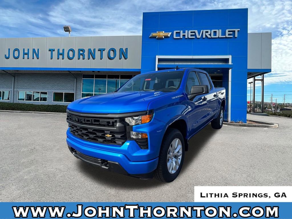 GO WEST to John Thornton Chevrolet, Celebrating 60 Years, Selling Chevy since 1957! Thank you for your interest in John Thornton Chevrolet! We happily serve Lithia Springs, Douglasville, Smyrna, Marietta, Kennesaw, Viningâs, Atlanta, Dallas, Acworth, Villa Rica and proud to be your Chevrolet Dealer for all of West Georgia by providing quality automotive services and unrivaled customer service. Custom Convenience Package (Electric Rear-Window Defogger, EZ Lift Power Lock and Release Tailgate, LED Cargo Area Lighting, Remote Vehicle Starter System, and Theft Deterrent System (unauthorized Entry)), Custom Value Package, High Capacity Suspension Package, Preferred Equipment Group 1CX (10-Way Power Driver Seat with Lumbar, 120-Volt Bed Mounted Power Outlet, 120-Volt Interior Power Outlet, 3.5 Monochromatic Display Driver Info Center, 40/20/40 Front Split-Bench Seat, Bluetooth® For Phone, Cloth Seat Trim, Color-Keyed Carpeting Floor Covering, Deep-Tinted Glass, Dual Rear USB Ports (charge Only), Electronic Cruise Control, Front Frame-Mounted Black Recovery Hooks, Front Rubberized Vinyl Floor Mats, HD Rear Vision Camera, Manual Tilt Wheel Steering Column, OnStar Services Capable, Power Front Windows with Driver Express Up/Down, Power Front Windows with Passenger Express Down, Power Rear Windows with Express Down, Rear 60/40 Folding Bench Seat (folds Up), Rear Rubberized-Vinyl Floor Mats, Remote Keyless Entry, SiriusXM Trial Subscription, Standard Tailgate, Teen Driver, Tire Pressure Monitoring System, and Wi-Fi Hot Spot Capable), Trailering Package (Hitch Guidance), 8-Speed Automatic, Black Cloth, 3.42 Rear Axle Ratio, 4-Wheel Disc Brakes, 6 Speakers, 6-Speaker Audio System, ABS brakes, Air Conditioning, Alloy wheels, AM/FM radio: SiriusXM, Apple CarPlay/Android Auto, Auto High-beam Headlights, Automatic Emergency Braking, Brake assist, Bumpers: body-color, Chevytec Spray-on Black Bedliner, Compass, Delay-off headlights, Driver door bin, Driver vanity mirror, Dual front impact airbags, Dual front side impact airbags, Electronic Stability Control, Emergency communication system: OnStar, Following Distance Indicator, Forward Collision Alert, Front anti-roll bar, Front Center Armrest w/Storage, Front Pedestrian Braking, Front reading lights, Front wheel independent suspension, Fully automatic headlights, Heated door mirrors, Illuminated entry, IntelliBeam Automatic High Beam on/Off, Lane Keep Assist with Lane Departure Warning, Low tire pressure warning, Occupant sensing airbag, Outside temperature display, Overhead airbag, Overhead console, Panic alarm, Passenger door bin, Passenger vanity mirror, Power door mirrors, Power driver seat, Power steering, Power windows, Premium audio system: Chevrolet Infotainment 3, Radio data system, Radio: Chevrolet Infotainment 3 System, Rear reading lights, Rear step bumper, Rear Wheelhouse Liners, Rear window defroster, Remote keyless entry, Security system, Speed control, Speed-sensing steering, Split folding rear seat, Tachometer, Tilt steering wheel, Traction control, Trip computer, Variably intermittent wipers, Voltmeter, and Wheels: 20 x 9 Bright Silver Painted Aluminum.