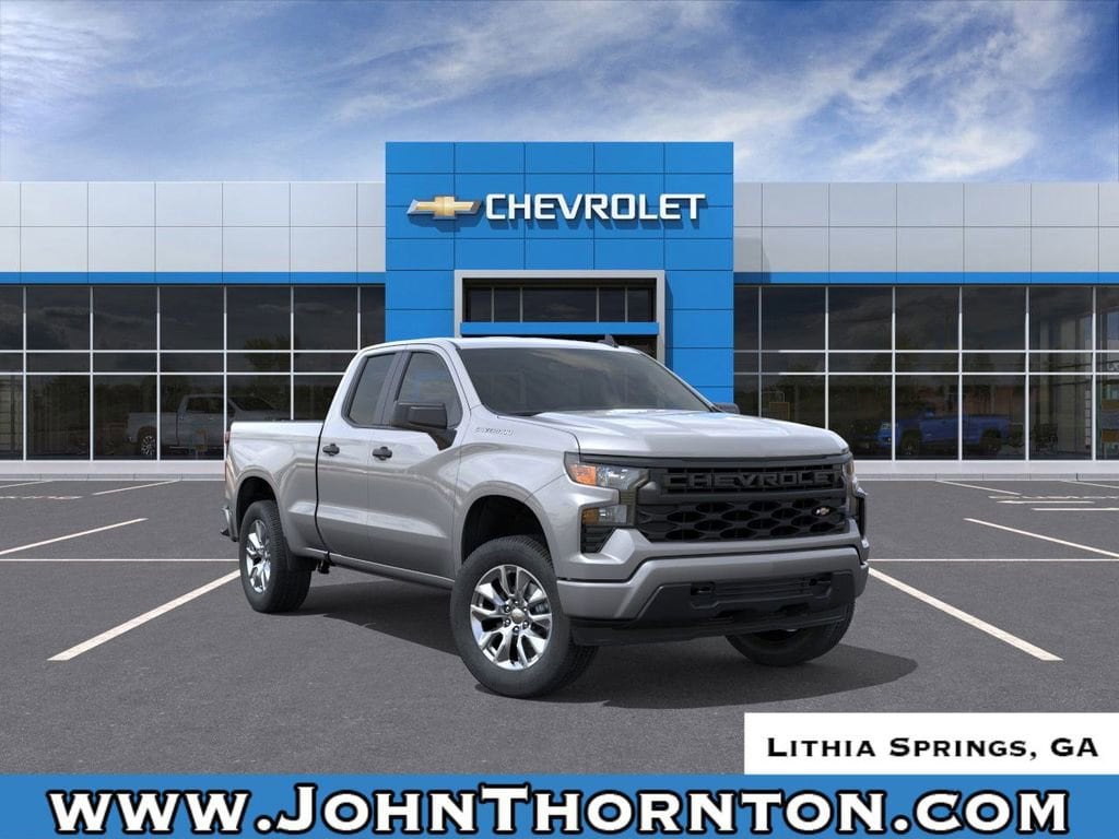 GO WEST to John Thornton Chevrolet, Celebrating 60 Years, Selling Chevy since 1957! Thank you for your interest in John Thornton Chevrolet! We happily serve Lithia Springs, Douglasville, Smyrna, Marietta, Kennesaw, Viningâs, Atlanta, Dallas, Acworth, Villa Rica and proud to be your Chevrolet Dealer for all of West Georgia by providing quality automotive services and unrivaled customer service. Custom Convenience Package (Electric Rear-Window Defogger, EZ Lift Power Lock and Release Tailgate, LED Cargo Area Lighting, Remote Vehicle Starter System, and Theft Deterrent System (unauthorized Entry)), Custom Value Package, High Capacity Suspension Package, Preferred Equipment Group 1CX (10-Way Power Driver Seat with Lumbar, 120-Volt Bed Mounted Power Outlet, 120-Volt Interior Power Outlet, 3.5 Monochromatic Display Driver Info Center, 40/20/40 Front Split-Bench Seat, Bluetooth® For Phone, Cloth Seat Trim, Color-Keyed Carpeting Floor Covering, Deep-Tinted Glass, Dual Rear USB Ports (charge Only), Electronic Cruise Control, Front Frame-Mounted Black Recovery Hooks, Front Rubberized Vinyl Floor Mats, HD Rear Vision Camera, Manual Tilt Wheel Steering Column, OnStar Services Capable, Power Front Windows with Driver Express Up/Down, Power Front Windows with Passenger Express Down, Power Rear Windows with Express Down, Rear 60/40 Folding Bench Seat (folds Up), Rear Rubberized-Vinyl Floor Mats, Remote Keyless Entry, SiriusXM Trial Subscription, Standard Tailgate, Teen Driver, Tire Pressure Monitoring System, and Wi-Fi Hot Spot Capable), Trailering Package (Hitch Guidance), 8-Speed Automatic, Jet Black Cloth, 3.42 Rear Axle Ratio, 4-Wheel Disc Brakes, 6 Speakers, 6-Speaker Audio System, ABS brakes, Air Conditioning, All-Weather Floor Liner, Alloy wheels, AM/FM radio: SiriusXM, Apple CarPlay/Android Auto, Auto High-beam Headlights, Automatic Emergency Braking, Brake assist, Bumpers: body-color, Chevytec Spray-on Black Bedliner, Compass, Delay-off headlights, Driver door bin, Driver vanity mirror, Dual front impact airbags, Dual front side impact airbags, Electronic Stability Control, Emergency communication system: OnStar, Following Distance Indicator, Forward Collision Alert, Front anti-roll bar, Front Center Armrest w/Storage, Front Pedestrian Braking, Front reading lights, Front wheel independent suspension, Fully automatic headlights, Heated door mirrors, Illuminated entry, IntelliBeam Automatic High Beam on/Off, Lane Keep Assist with Lane Departure Warning, Low tire pressure warning, Occupant sensing airbag, Outside temperature display, Overhead airbag, Overhead console, Panic alarm, Passenger door bin, Passenger vanity mirror, Power door mirrors, Power driver seat, Power steering, Power windows, Premium audio system: Chevrolet Infotainment 3, Radio data system, Radio: Chevrolet Infotainment 3 System, Rear reading lights, Rear step bumper, Rear window defroster, Remote keyless entry, Security system, Speed control, Speed-sensing steering, Split folding rear seat, Tachometer, Tilt steering wheel, Traction control, Trip computer, Variably intermittent wipers, Voltmeter, and Wheels: 20 x 9 Bright Silver Painted Aluminum.