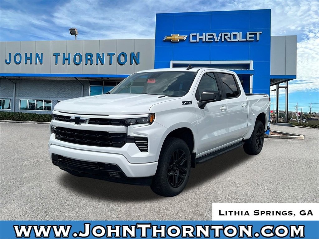 GO WEST to John Thornton Chevrolet, Celebrating 60 Years, Selling Chevy since 1957! Thank you for your interest in John Thornton Chevrolet! We happily serve Lithia Springs, Douglasville, Smyrna, Marietta, Kennesaw, Viningâs, Atlanta, Dallas, Acworth, Villa Rica and proud to be your Chevrolet Dealer for all of West Georgia by providing quality automotive services and unrivaled customer service. Convenience Package (10-Way Power Driver Seat w/Lumbar, 120-Volt Bed Mounted Power Outlet, 120-Volt Interior Power Outlet, Dual Rear USB Ports (Charge Only), Dual-Zone Automatic Climate Control, Electric Rear-Window Defogger, Heated Driver & Front Outboard Passenger Seats, Heated Steering Wheel, Keyless Open & Start, LED Cargo Area Lighting, Manual Tilt/Telescoping Steering Column, Remote Vehicle Starter System, Theft Deterrent System (Unauthorized Entry), and Wrapped Steering Wheel), Convenience Package II (Hitch Guidance w/Hitch View, In-Vehicle Trailering System App, Power Sliding Rear Window w/Rear Defogger, Premium Bose 7-Speaker Sound System, and Universal Home Remote), Dark Appearance Package (Wheels: 20 x 9 High Gloss Black Painted Alum), High Capacity Suspension Package, Leather Package (Leather-Appointed Front Seat Trim), Preferred Equipment Group 1SP (12.3 Multicolor Reconfigurable Digital Display, 6-Speaker Audio System, All-Star Edition, Auto-Locking Rear Differential, Bluetooth® For Phone, Color-Keyed Carpeting Floor Covering, Deep-Tinted Glass, Electronic Cruise Control, EZ Lift Power Lock & Release Tailgate, Front Frame-Mounted Black Recovery Hooks, Front LED Fog Lamps, Front Rubberized Vinyl Floor Mats, HD Rear Vision Camera, Heated Power-Adjustable Outside Mirrors, High Gloss Black Mirror Caps, Inside Rear-View Mirror w/Tilt, Integrated Trailer Brake Controller, OnStar Services Capable, Power Front Windows w/Driver Express Up/Down, Power Front Windows w/Passenger Express Down, Power Rear Windows w/Express Down, Rear 60/40 Folding Bench Seat (Folds Up), Rear Rubberized-Vinyl Floor Mats, SiriusXM w/360L Trial Subscription, Standard Tailgate, Steering Wheel Audio Controls, Teen Driver, Tire Pressure Monitoring System, and Wi-Fi Hot Spot Capable), Protection Package (Chevytec Spray-On Black Bedliner and Rear Wheelhouse Liners), Standard Suspension Package, Trailering Package (Hitch Guidance), Up-Level Rear Seat w/Storage Package, Z71 Off-Road & Protection Package (All-Weather Floor Liner (LPO) (AAK)), Z71 Off-Road Package (Dual Exhaust w/Polished Outlets, Heavy-Duty Air Filter, Hill Descent Control, and Off-Road Suspension), 10-Speed Automatic, 4WD, Black Leather, 2 USB Data Ports, 220 Amp Alternator, 3.23 Rear Axle Ratio, 4-Wheel Disc Brakes, 40/20/40 Front Split-Bench Seat, 6 Speakers, ABS brakes, Air Conditioning, Alloy wheels, AM/FM radio: SiriusXM with 360L, Apple CarPlay/Android Auto, Auto High-beam Headlights, Automatic Emergency Braking, Automatic temperature control, Black Tailgate CHEVROLET Lettering (LPO), Brake assist, Bumpers: body-color, Cloth Seat Trim, Compass, Delay-off headlights, Driver door bin, Driver vanity mirror, Dual front impact airbags, Dual front side impact airbags, Electronic Stability Control, Electronic Transmission Range Selector Shifter, Emergency communication system: OnStar, Engine Block Heater, Floor Mounted Center Console, Following Distance Indicator, Forward Collision Alert, Front anti-roll bar, Front Bucket Seats, Front Center Armrest w/Storage, Front dual zone A/C, Front fog lights, Front Pedestrian Braking, Front reading lights, Front wheel independent suspension, Fully automatic headlights, Heated door mirrors, Heated front seats, Heated steering wheel, Illuminated entry, IntelliBeam Automatic High Beam On/Off, Lane Keep Assist w/Lane Departure Warning, Low tire pressure warning, Occupant sensing airbag, Off-Road High Clearance Steps (LPO), Outside temperature display, Overhead airbag, Overhead c