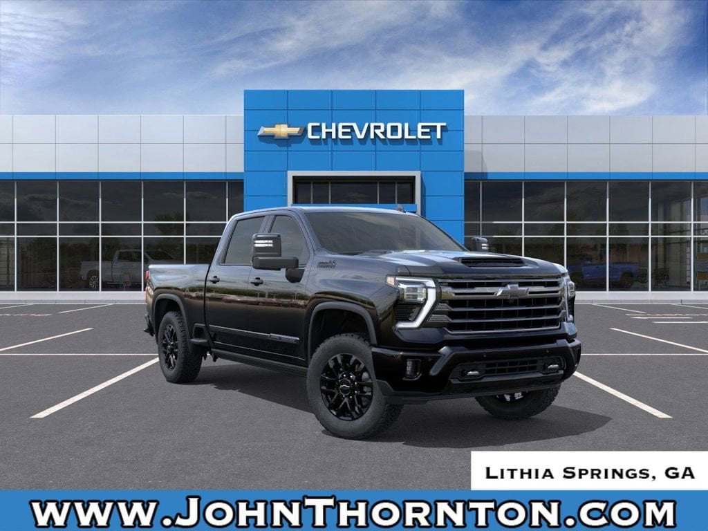 GO WEST to John Thornton Chevrolet, Celebrating 60 Years, Selling Chevy since 1957! Thank you for your interest in John Thornton Chevrolet! We happily serve Lithia Springs, Douglasville, Smyrna, Marietta, Kennesaw, Viningâs, Atlanta, Dallas, Acworth, Villa Rica and proud to be your Chevrolet Dealer for all of West Georgia by providing quality automotive services and unrivaled customer service. Gooseneck/5th Wheel Prep Package (Black Chevytec Spray-on Bedliner), High Country Premium Package (Power Sunroof), Hitch Package, Midnight Edition (Black Grille Bar with Chevy Black Bow Tie, Body-Color Mirror Caps, High Gloss Black Door Handles, Power-Retractable Black Assist Steps, and Wheels: 20 High Gloss Black Painted), Preferred Equipment Group 3LZ (120-Volt Bed Mounted Power Outlet, 120-Volt Interior Power Outlet, 170 Amp Alternator, 6 Rectangular Chromed Tubular Assist Steps, Auto-Dimming Inside Rear-View Mirror, Bed View Camera with Two Trailer Camera Provisions, Bluetooth® For Phone, Chevrolet Connected Access Capable, Chrome Door Handles, Chrome Mirror Caps, Color-Keyed Carpeting Floor Covering, Compass, Deep-Tinted Glass, Durabed Pickup Bed, Electric Rear-Window Defogger, Front Bucket Seats, Front Carpeted Floor Mats, Front Chrome Recovery Hooks, Front LED Fog Lamps, Front Rain-Sensing Wipers, Heated 2nd Row Outboard Seats, Heated Steering Wheel, Hitch Guidance with Hitch View, in-Vehicle Trailering App System, Keyless Open and Start, LED Cargo Area Lighting, Manual Tilt and Telescoping Steering Column, OnStar Services Capable, Perforated Leather Seat Trim, Polished Exhaust Tip, Power Door Locks, Power Front Windows with Driver Express Up/Down, Power Front Windows with Passenger Express Up/Down, Power Rear Windows with Express Down, Power Sliding Rear Window with Defogger, Power Up/Down Tailgate Function with Power Lock and Release, Push Button Start, Rear Carpeted Floor Mats, Rear Cross Traffic Alert, Rear Wheelhouse Liners, Remote Vehicle Starter System, SiriusXM with 360L Trial Subscription, Standard Tailgate, Steering Wheel Audio Controls, Trailer Camera Provisions, Ultrasonic Front and Rear Park Assist, Unauthorized Entry Theft-Deterrent System, Universal Home Remote, Wheels: 20 8-Spoke Bright Finish Aluminum, Wi-Fi Hotspot Capable, Wireless Charging, Wireless Phone Projection, and Wrapped Steering Wheel), Suspension Package, Technology Package (15 Diagonal Multicolor Head-Up Display and Rear Camera Mirror), Up-Level Rear Seat with Storage Package, Z71 Off-Road Package (Hill Descent Control and Off-Road Suspension), 10-Speed Automatic, 4WD, Jet Black Leather, 10-Way Power Driver Seat Adjuster with Lumbar, 10-Way Power Passenger Seat Adjuster with Lumbar, 1st and 2nd Row All-Weather Floor Liners, 220 Amp Alternator, 3 Years SiriusXM, 4-Wheel Disc Brakes, 7 Speakers, 720 Cold-Cranking Amps Heavy-Duty Battery, ABS brakes, Air Conditioning, Alloy wheels, AM/FM radio: SiriusXM with 360L, Apple CarPlay/Android Auto, Auto High-beam Headlights, Auto-dimming door mirrors, Auto-dimming Rear-View mirror, Automatic temperature control, Bodyside moldings, BOSE Premium 7-Speaker Sound System, Brake assist, Bumpers: body-color, Delay-off headlights, Driver door bin, Driver Memory, Driver vanity mirror, Dual front impact airbags, Dual front side impact airbags, Electronic Stability Control, Emergency communication system: OnStar, Engine Block Heater, Exhaust Brake, Floor-Mounted Center Console, Front anti-roll bar, Front Center Armrest, Front dual zone A/C, Front fog lights, Front reading lights, Front wheel independent suspension, Fully automatic headlights, Garage door transmitter, Genuine wood console insert, Genuine wood dashboard insert, Genuine wood door panel insert, Heated door mirrors, Heated Driver and Front Outboard Passenger Seating, Heated front seats, Heated rear seats, Heated steering wheel, Illuminated entry, Low tire pressure warning, Memory seat, Occupant sensing airba