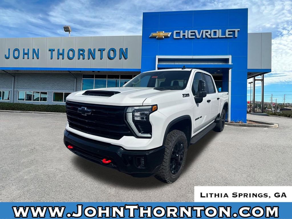 GO WEST to John Thornton Chevrolet, Celebrating 60 Years, Selling Chevy since 1957! Thank you for your interest in John Thornton Chevrolet! We happily serve Lithia Springs, Douglasville, Smyrna, Marietta, Kennesaw, Viningâs, Atlanta, Dallas, Acworth, Villa Rica and proud to be your Chevrolet Dealer for all of West Georgia by providing quality automotive services and unrivaled customer service. All Star Edition, Cloth Rear Seat with Storage Package, Convenience Package (10-Way Power Driver Seat Adjuster with Lumbar, Dual-Zone Automatic Climate Control, Front LED Fog Lamps, LED Cargo Area Lighting, and Manual Tilt and Telescoping Steering Column), Convenience Package II (Hitch Guidance with Hitch View, in-Vehicle Trailering App System, Power Sliding Rear Window with Defogger, and Universal Home Remote), Heat Package (Heated Driver and Front Outboard Passenger Seating and Heated Steering Wheel), Leather Package, Preferred Equipment Group 1LT (120-Volt Bed Mounted Power Outlet, 120-Volt Interior Power Outlet, 17 Machined Aluminum Wheels, 170 Amp Alternator, 2-Speed Electronic Shift Transfer Case, 3.73 Rear Axle Ratio, 4-Way Manual Driver Seat Adjuster, Black Mirror Caps, Bluetooth® For Phone, Chevrolet Connected Access Capable, Color-Keyed Carpeting Floor Covering, Compass, Deep-Tinted Glass, Durabed Pickup Bed, Electronic Cruise Control with Set and Resume Speed, EZ Lift Power Lock and Release Tailgate, Front Rubberized Vinyl Floor Mats, Halogen Reflector Headlamps, HD Rear Vision Camera, Heated Vertical Trailering Mirrors, Keyless Open and Start, OnStar Services Capable, Power Door Locks, Power Front Windows with Driver Express Up/Down, Power Front Windows with Passenger Express Down, Power Rear Windows with Express Down, Push Button Start, Rear 60/40 Folding Bench Seat (folds Up), Rear Rubberized Vinyl Floor Mats, SiriusXM with 360L Trial Subscription, Standard Tailgate, Steering Wheel Audio Controls, Wi-Fi Hotspot Capable, Wireless Phone Projection, and Wrapped Steering Wheel), Remote Start Package (Electric Rear-Window Defogger, Remote Vehicle Starter System, and Unauthorized Entry Theft-Deterrent System), Safety Package (Bed View Camera with Two Trailer Camera Provisions, HD Surround Vision, Rear Cross Traffic Alert, Trailer Camera Provisions, Trailer Side Blind Zone Alert, and Ultrasonic Front and Rear Park Assist), Suspension Package, Trail Boss Package (Animated LED Projector Headlamps, Auto-Dimming Inside Rear-View Mirror, Black Chevytec Spray-on Bedliner, Black Grille Bar with Chevy Black Bow Tie, Front Frame-Mounted Red Recovery Hooks, Heated and Auto-Dimming Vertical Trailering Mirrors, High Gloss Black Door Handles, High Gloss Black Front Bumper, High Gloss Black Mirror Caps, High Gloss Black Rear Bumper, and Wheels: 20 High Gloss Black Painted), Up-Level Rear Seat with Storage Package, Z71 Off-Road Package (Hill Descent Control and Off-Road Suspension), 10-Speed Automatic, 4WD, Jet Black Cloth, 1st and 2nd Row All-Weather Floor Liners, 3 Years SiriusXM, 4-Wheel Disc Brakes, 5th Wheel and Gooseneck Trailer Wiring Provisions, 6 Speakers, 6-Speaker Audio System, 720 Cold-Cranking Amps Heavy-Duty Battery, ABS brakes, Air Conditioning, Alloy wheels, AM/FM radio: SiriusXM with 360L, Apple CarPlay/Android Auto, Auto High-beam Headlights, Body-Color Front Bumper, Body-Color Rear Bumper, Brake assist, Bumpers: chrome, Cloth Seat Trim, Delay-off headlights, Driver door bin, Driver vanity mirror, Dual front impact airbags, Dual front side impact airbags, Electronic Stability Control, Emergency communication system: OnStar, Front 40/20/40 Split-Bench Seats with Lockable Storage, Front anti-roll bar, Front Center Armrest w/Storage, Front reading lights, Front wheel independent suspension, Fully automatic headlights, Heated door mirrors, Illuminated entry, Low tire pressure warning, Occupant sensing airbag, Off-Road High Clearance Step, Outside temperature display, Overhead airb