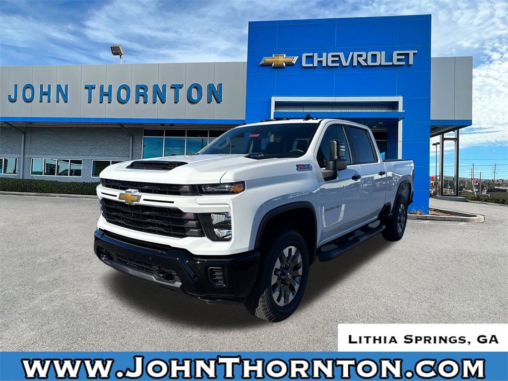 GO WEST to John Thornton Chevrolet, Celebrating 60 Years, Selling Chevy since 1957! Thank you for your interest in John Thornton Chevrolet! We happily serve Lithia Springs, Douglasville, Smyrna, Marietta, Kennesaw, Viningâs, Atlanta, Dallas, Acworth, Villa Rica and proud to be your Chevrolet Dealer for all of West Georgia by providing quality automotive services and unrivaled customer service. Custom Convenience Package (10-Way Power Driver Seat Adjuster with Lumbar, 120-Volt Bed Mounted Power Outlet, 120-Volt Interior Power Outlet, Dual Rear USB Ports (charge Only), Electric Rear-Window Defogger, EZ Lift Power Lock and Release Tailgate, LED Cargo Area Lighting, Remote Vehicle Starter System, and Unauthorized Entry Theft-Deterrent System), Custom Value Package (Auto-Dimming Inside Rear-View Mirror and Heated and Auto-Dimming Vertical Trailering Mirrors), CX Safety Package (Lane Change Alert with Side Blind Zone Alert, Rear Cross Traffic Alert, and Ultrasonic Front and Rear Park Assist), Preferred Equipment Group 1CX (170 Amp Alternator, 2-Speed Electronic Shift Transfer Case, 3.5 Diagonal Monochromatic Display DIC, 3.73 Rear Axle Ratio, Black Mirror Caps, Bluetooth® For Phone, Chevrolet Connected Access Capable, Color-Keyed Carpeting Floor Covering, Compass, Deep-Tinted Glass, Durabed Pickup Bed, Electronic Cruise Control with Set and Resume Speed, Front Rubberized Vinyl Floor Mats, HD Rear Vision Camera, Heated Vertical Trailering Mirrors, Locking Tailgate, Manual Tailgate Function with No EZ Lift, Manual Tilt-Wheel Steering Column, OnStar Services Capable, Power Door Locks, Power Front Windows with Driver Express Up/Down, Power Front Windows with Passenger Express Down, Power Rear Windows with Express Down, Push Button Start, Rear 60/40 Folding Bench Seat (folds Up), Rear Rubberized Vinyl Floor Mats, Remote Keyless Entry, SiriusXM with 360L Trial Subscription, Standard Tailgate, Wheels: 20 10-Spoke Machined Aluminum, Wi-Fi Hotspot Capable, and Wireless Phone Projection), Suspension Package, Z71 Off-Road Package (Hill Descent Control and Off-Road Suspension), 10-Speed Automatic, 4WD, Jet Black Cloth, 4-Wheel Disc Brakes, 4 Round Black Assist Steps, 5th Wheel and Gooseneck Trailer Wiring Provisions, 6 Speakers, 6-Speaker Audio System, 720 Cold-Cranking Amps Heavy-Duty Battery, ABS brakes, Air Conditioning, Alloy wheels, AM/FM radio: SiriusXM with 360L, Apple CarPlay/Android Auto, Auto High-beam Headlights, Black Chevytec Spray-on Bedliner, Brake assist, Cloth Seat Trim, Delay-off headlights, Driver door bin, Dual front impact airbags, Dual front side impact airbags, Electronic Stability Control, Emergency communication system: OnStar, Front 40/20/40 Split-Bench Seats with Lockable Storage, Front anti-roll bar, Front Center Armrest w/Storage, Front reading lights, Front wheel independent suspension, Fully automatic headlights, Heated door mirrors, Illuminated entry, LED Smoked Amber Roof Marker Lamps, Low tire pressure warning, Occupant sensing airbag, Outside temperature display, Overhead airbag, Overhead console, Panic alarm, Passenger door bin, Passenger vanity mirror, Power door mirrors, Power steering, Power windows, Premium audio system: Chevrolet Infotainment 3, Radio: Chevrolet Infotainment 3 System, Rear reading lights, Rear step bumper, Remote keyless entry, Speed control, Split folding rear seat, Tachometer, Tilt steering wheel, Traction control, Trip computer, Turn signal indicator mirrors, Variably intermittent wipers, and Voltmeter.