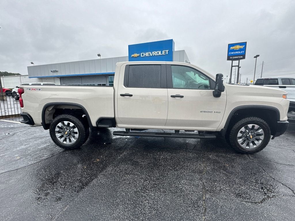 GO WEST to John Thornton Chevrolet, Celebrating 60 Years, Selling Chevy since 1957! Thank you for your interest in John Thornton Chevrolet! We happily serve Lithia Springs, Douglasville, Smyrna, Marietta, Kennesaw, Viningâs, Atlanta, Dallas, Acworth, Villa Rica and proud to be your Chevrolet Dealer for all of West Georgia by providing quality automotive services and unrivaled customer service. Custom Convenience Package (10-Way Power Driver Seat Adjuster with Lumbar, 120-Volt Bed Mounted Power Outlet, 120-Volt Interior Power Outlet, Dual Rear USB Ports (charge Only), Electric Rear-Window Defogger, EZ Lift Power Lock and Release Tailgate, LED Cargo Area Lighting, Remote Vehicle Starter System, and Unauthorized Entry Theft-Deterrent System), Custom Value Package (Auto-Dimming Inside Rear-View Mirror and Heated and Auto-Dimming Vertical Trailering Mirrors), CX Safety Package (Lane Change Alert with Side Blind Zone Alert, Rear Cross Traffic Alert, and Ultrasonic Front and Rear Park Assist), Preferred Equipment Group 1CX (170 Amp Alternator, 2-Speed Electronic Shift Transfer Case, 3.5 Diagonal Monochromatic Display DIC, 3.73 Rear Axle Ratio, Black Mirror Caps, Bluetooth® For Phone, Chevrolet Connected Access Capable, Color-Keyed Carpeting Floor Covering, Compass, Deep-Tinted Glass, Durabed Pickup Bed, Electronic Cruise Control with Set and Resume Speed, Front Rubberized Vinyl Floor Mats, HD Rear Vision Camera, Heated Vertical Trailering Mirrors, Locking Tailgate, Manual Tailgate Function with No EZ Lift, Manual Tilt-Wheel Steering Column, OnStar Services Capable, Power Door Locks, Power Front Windows with Driver Express Up/Down, Power Front Windows with Passenger Express Down, Power Rear Windows with Express Down, Push Button Start, Rear 60/40 Folding Bench Seat (folds Up), Rear Rubberized Vinyl Floor Mats, Remote Keyless Entry, SiriusXM with 360L Trial Subscription, Standard Tailgate, Wheels: 20 10-Spoke Machined Aluminum, Wi-Fi Hotspot Capable, and Wireless Phone Projection), Suspension Package, 10-Speed Automatic, 4WD, Jet Black Cloth, 4-Wheel Disc Brakes, 5th Wheel and Gooseneck Trailer Wiring Provisions, 6 Speakers, 6-Speaker Audio System, 6 Rectangular Black Tubular Assist Steps, 720 Cold-Cranking Amps Heavy-Duty Battery, ABS brakes, Air Conditioning, All-Weather Floor Liners, Alloy wheels, AM/FM radio: SiriusXM with 360L, Apple CarPlay/Android Auto, Auto High-beam Headlights, Black Chevytec Spray-on Bedliner, Brake assist, Cloth Seat Trim, Delay-off headlights, Driver door bin, Dual front impact airbags, Dual front side impact airbags, Electronic Stability Control, Emergency communication system: OnStar, Front 40/20/40 Split-Bench Seats with Lockable Storage, Front anti-roll bar, Front Center Armrest w/Storage, Front reading lights, Front wheel independent suspension, Fully automatic headlights, Heated door mirrors, Illuminated entry, LED Smoked Amber Roof Marker Lamps, Low tire pressure warning, Occupant sensing airbag, Outside temperature display, Overhead airbag, Overhead console, Panic alarm, Passenger door bin, Passenger vanity mirror, Power door mirrors, Power steering, Power windows, Premium audio system: Chevrolet Infotainment 3, Radio: Chevrolet Infotainment 3 System, Rear reading lights, Rear step bumper, Remote keyless entry, Speed control, Split folding rear seat, Tachometer, Tilt steering wheel, Traction control, Trip computer, Turn signal indicator mirrors, Variably intermittent wipers, and Voltmeter.