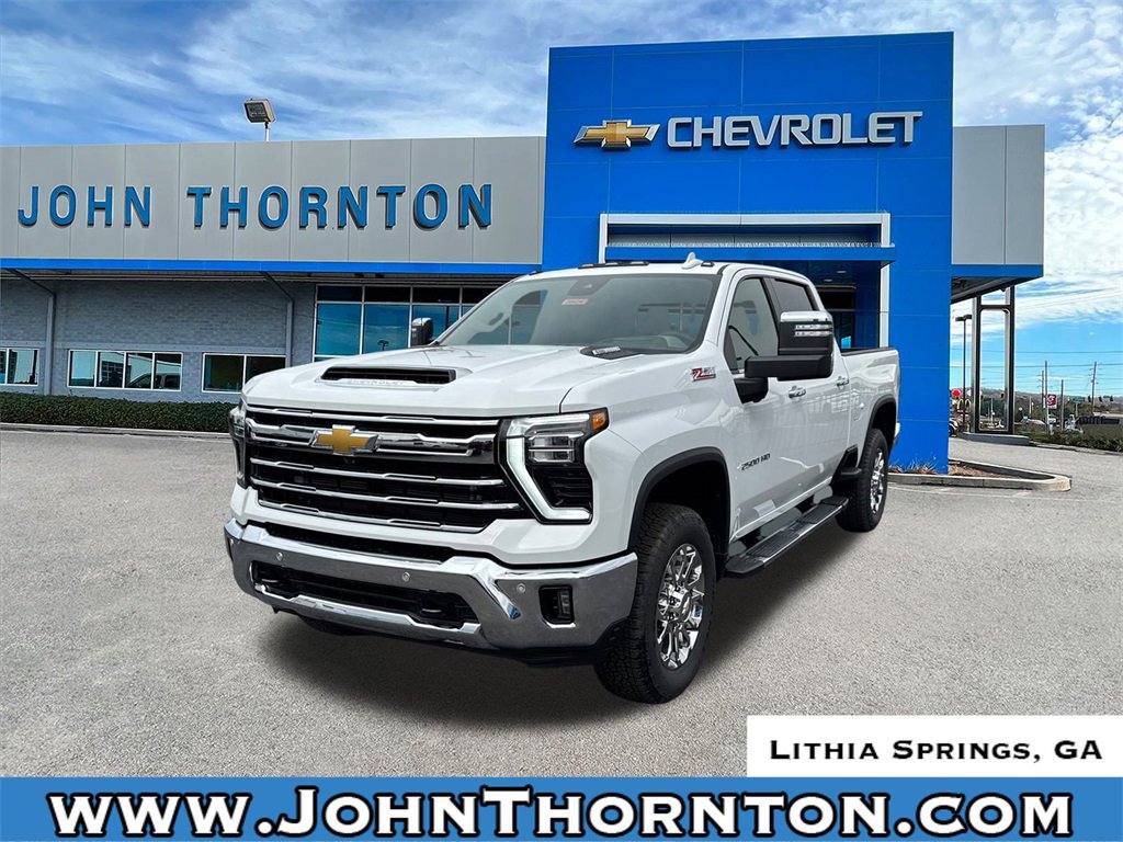GO WEST to John Thornton Chevrolet, Celebrating 60 Years, Selling Chevy since 1957! Thank you for your interest in John Thornton Chevrolet! We happily serve Lithia Springs, Douglasville, Smyrna, Marietta, Kennesaw, Viningâs, Atlanta, Dallas, Acworth, Villa Rica and proud to be your Chevrolet Dealer for all of West Georgia by providing quality automotive services and unrivaled customer service. Gooseneck/5th Wheel Prep Package (Black Chevytec Spray-on Bedliner), Hitch Package, LTZ Convenience Package (2 Charge/Data USB Ports Inside Center Console, BOSE Premium 7-Speaker Sound System, Floor-Mounted Center Console, Front Bucket Seats, LED Cargo Area Lighting, Ventilated Driver and Front Passenger Seats, and Wireless Charging), LTZ Convenience Package II (Adaptive Cruise Control, Heated 2nd Row Outboard Seats, Power Sliding Rear Window with Defogger, and Universal Home Remote), LTZ Premium Package, Preferred Equipment Group 1LZ (10-Way Power Driver Seat Adjuster with Lumbar, 10-Way Power Passenger Seat Adjuster with Lumbar, 120-Volt Bed Mounted Power Outlet, 120-Volt Interior Power Outlet, 170 Amp Alternator, 6-Speaker Audio System, Auto-Dimming Inside Rear-View Mirror, Bluetooth® For Phone, Chevrolet Connected Access Capable, Chrome Door Handles, Chrome Mirror Caps, Color-Keyed Carpeting Floor Covering, Compass, Deep-Tinted Glass, Driver Memory, Durabed Pickup Bed, Electric Rear-Window Defogger, Electronic Cruise Control with Set and Resume Speed, EZ Lift Power Lock and Release Tailgate, Front 40/20/40 Split-Bench Seats with Lockable Storage, Front LED Fog Lamps, Front Rain-Sensing Wipers, Front Rubberized Vinyl Floor Mats, HD Rear Vision Camera, Heated Driver and Front Outboard Passenger Seating, Heated Steering Wheel, Hitch Guidance with Hitch View, in-Vehicle Trailering App System, Keyless Open and Start, Manual Tilt and Telescoping Steering Column, OnStar Services Capable, Perforated Leather-Appointed Front Outboard Seat Trim, Power Door Locks, Power Front Windows with Driver Express Up/Down, Power Front Windows with Passenger Express Up/Down, Power Rear Windows with Express Down, Push Button Start, Rear Rubberized Vinyl Floor Mats, Rear Wheelhouse Liners, Remote Vehicle Starter System, SiriusXM with 360L Trial Subscription, Standard Tailgate, Steering Wheel Audio Controls, Unauthorized Entry Theft-Deterrent System, Wheels: 18 Machined Aluminum with Silver Painted Accents, Wi-Fi Hotspot Capable, Wireless Phone Projection, and Wrapped Steering Wheel), Safety Package (Bed View Camera with Two Trailer Camera Provisions, HD Surround Vision, Rear Cross Traffic Alert, Safety Alert Seat, Trailer Camera Provisions, Trailer Side Blind Zone Alert, and Ultrasonic Front and Rear Park Assist), Suspension Package, Technology Package (15 Diagonal Multicolor Head-Up Display and Rear Camera Mirror), Up-Level Rear Seat with Storage Package, Z71 Off-Road and Protection Package (1st and 2nd Row All-Weather Floor Liners), Z71 Off-Road Package (Hill Descent Control and Off-Road Suspension), 10-Speed Automatic, 4WD, Gideon/Very Dark Atmosphere Leather, 220 Amp Alternator, 4-Wheel Disc Brakes, 6 Speakers, 6 Rectangular Chromed Tubular Assist Steps, 720 Cold-Cranking Amps Heavy-Duty Battery, ABS brakes, Air Conditioning, Alloy wheels, AM/FM radio: SiriusXM with 360L, Apple CarPlay/Android Auto, Auto High-beam Headlights, Auto-dimming door mirrors, Auto-dimming Rear-View mirror, Automatic temperature control, Brake assist, Bumpers: chrome, Delay-off headlights, Driver door bin, Driver vanity mirror, Dual front impact airbags, Dual front side impact airbags, Electronic Stability Control, Emergency communication system: OnStar, Engine Block Heater, Exhaust Brake, Front anti-roll bar, Front Center Armrest w/Storage, Front dual zone A/C, Front fog lights, Front reading lights, Front wheel independent suspension, Fully automatic headlights, Heated door mirrors, Heated front seats, Heated steering wheel, I