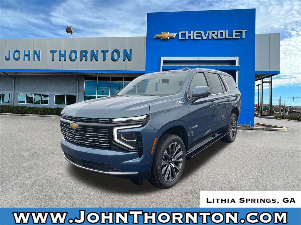 GO WEST to John Thornton Chevrolet, Celebrating 60 Years, Selling Chevy since 1957! Thank you for your interest in John Thornton Chevrolet! We happily serve Lithia Springs, Douglasville, Smyrna, Marietta, Kennesaw, Viningâs, Atlanta, Dallas, Acworth, Villa Rica and proud to be your Chevrolet Dealer for all of West Georgia by providing quality automotive services and unrivaled customer service. Advanced Trailering Package (Blind Zone Steering Assist with Trailering, Hitch View with Pan/Zoom Image Adjustment, and Smart Trailer Integration Indicator), High Country Deluxe (Air Ride Adaptive Suspension, Dual-Pane Power Panoramic Sunroof, and Power-Retractable Assist Steps), Max Trailering Package (2-Speed Active Electronic AutoTrac Transfer Case, Hill Descent Control, and Integrated Trailer Brake Controller), Preferred Equipment Group 3LZ (15 Diagonal Multi-Color Head-Up Display, 1st and 2nd Row Color-Keyed Carpeted Floor Mats, 3-Spoke Wrapped Steering Wheel, 3rd Row 60/40 Power-Folding Split-Bench Seat, Bose 10-Speaker Centerpoint Surround Audio System Feature, Bright Front and Rear Door Sill Plates, Chrome Door Handles with Body-Color Strip, Color-Keyed Carpeting Floor Covering, Dual Exhaust System, Floor Console, Front Bucket Seats, Front LED Fog Lamps, Frontal Driver and Outboard Passenger Airbags, Heated 2nd Row Outboard Seats, Heated Steering Wheel, Inside Rearview Auo-Dimming Rear Camera Mirror, Interior Camera, Key Card, LED Headlamps with LED Daytime Running Lamps, LED Tail Lamps, Magnetic Ride Control Suspension, Memory Settings, Outside Heated Power-Adjustable Mirrors, Power Release 2nd Row Bucket Seats, Power Tilt and Telescopic Steering Column, Rear Power Liftgate, Remote Start, Set of 4 Wheel Locks, SiriusXM with 360L Trial Subscription, Universal Home Remote, Wheels: 22 x 9 Bright Machined Aluminum, and Wireless Phone Charging), Premium Liner Protection Package (3rd Row All-Weather Floor Liners, All-Weather Cargo Mat, and First and Second Rows Premium Floor Liners), 4WD, Jet Black/Mocha Leather, 10 Speakers, 3 Years SiriusXM, 3.23 Rear Axle Ratio, 3rd row seats: split-bench, 4-Way Power Driver Lumbar Seat Adjuster, 4-Way Power Front Passenger Lumbar Seat Adjuster, 4-Wheel Disc Brakes, 8-Way Power Driver Seat Adjuster, 8-Way Power Front Passenger Seat Adjuster, ABS brakes, Adaptive suspension, Air Conditioning, Alloy wheels, AM/FM radio: SiriusXM with 360L, Apple CarPlay/Android Auto, Auto High-beam Headlights, Auto-dimming door mirrors, Auto-dimming Rear-View mirror, Auto-leveling suspension, Automatic temperature control, Brake assist, Bumpers: body-color, Compass, Delay-off headlights, Driver and Front Passenger Heated and Ventilated Seats, Driver door bin, Driver vanity mirror, Dual front impact airbags, Dual front side impact airbags, Electronic Stability Control, Emergency communication system: OnStar and Chevrolet connected services capable, Exterior Parking Camera Rear, Extra Capacity Cooling System, Four wheel independent suspension, Front anti-roll bar, Front Center Armrest, Front dual zone A/C, Front fog lights, Front reading lights, Fully automatic headlights, Garage door transmitter, Heads-Up Display, Heated door mirrors, Heated Driver and Front Passenger Seats, Heated front seats, Heated rear seats, Heated steering wheel, Illuminated entry, Low tire pressure warning, Memory seat, Navigation system: Google built-in compatibility (select service plan required, terms and limitations apply), Occupant sensing airbag, Outside temperature display, Overhead airbag, Overhead console, Panic alarm, Passenger door bin, Passenger vanity mirror, Perforated Leather Seat Trim, Power door mirrors, Power driver seat, Power Liftgate, Power passenger seat, Power steering, Power windows, Premium audio system: Chevrolet Infotainment 3 Premium, Radio data system, Radio: 17.7 Diagonal Advanced Color LCD Display, Rain sensing wipers, Rear air c