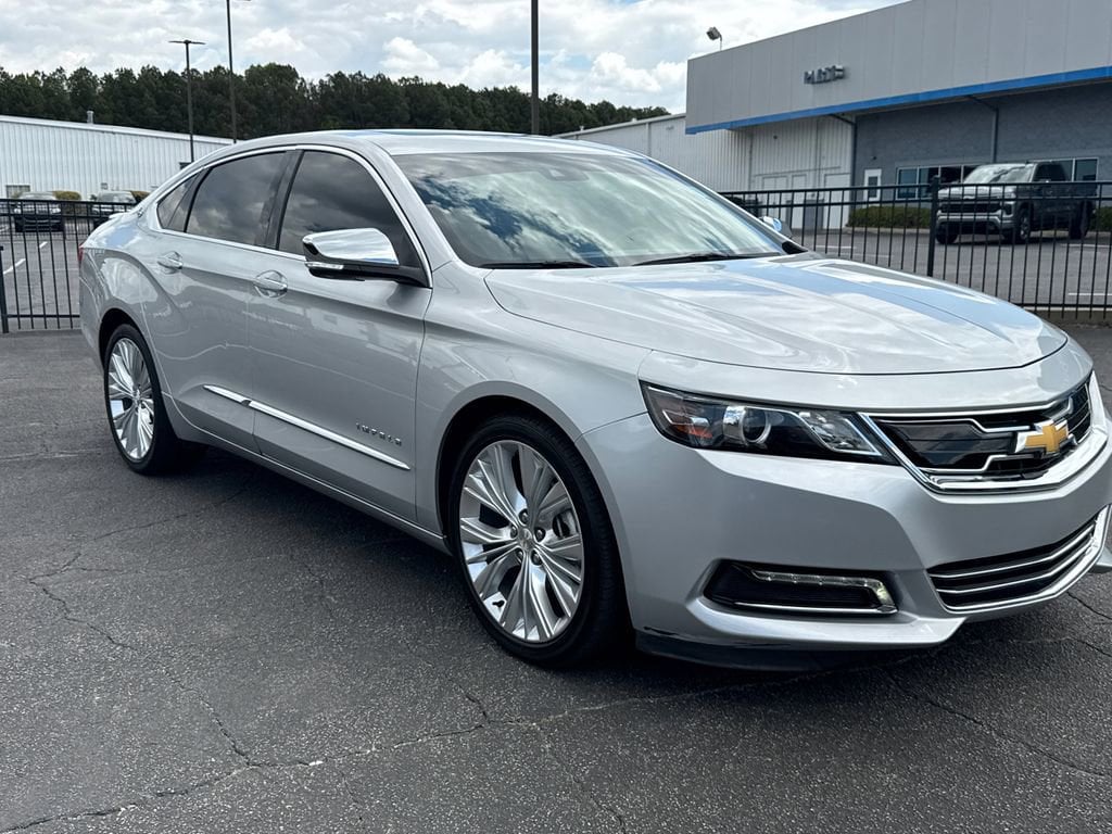 Odometer is 62924 miles below market average!Thank you for considering this beautiful 2018 Chevrolet Impala Premier finished in stunning Silver Ice Metallic with Jet Black w/Perforated Leather-Appointed Seat Trim. GO WEST to John Thornton Chevrolet, Celebrating 60 Years, Selling Chevy since 1957! Thank you for your interest in John Thornton Chevrolet! We happily serve Lithia Springs, Douglasville, Smyrna, Marietta, Kennesaw, Viningâs, Atlanta, Dallas, Acworth, Villa Rica and proud to be your Chevrolet Dealer for all of West Georgia by providing quality automotive services and unrivaled customer service. Preferred Equipment Group 2LZ, Premier Confidence Package (Forward Collision Alert, Front Automatic Braking, Full Range Adaptive Cruise Control, Lane Departure Warning System, and Wheels: 20 Aluminum), Premier Convenience Package (Auto-Dimming Inside Rear-View Mirror, Carpeted Trunk Mat, Driver Memory, Heated Steering Wheel, Outside Heated Power-Adjustable Mirrors, Power Tilt & Telescoping Steering Column, Premium Carpeted Front & Rear Floor Mats, Ventilated Driver Seat, and Ventilated Front Passenger Seat), 11 Speakers, 4-Wheel Disc Brakes, 8-Way Power Driver Seat Adjuster, 8-Way Power Front Passenger Seat Adjuster, 8 Diagonal Color Infotainment Display, ABS brakes, Air Conditioning, Alloy wheels, AM/FM radio: SiriusXM, Apple CarPlay/Android Auto, Automatic temperature control, Blind spot sensor: Lane Change Alert with Side Blind Zone Alert warning, Bodyside moldings, Bose Centerpoint Surround Sound Premium System, Brake assist, Bumpers: body-color, Compass, Delay-off headlights, Driver door bin, Driver Power Lumbar Seat Adjuster, Driver vanity mirror, Dual front impact airbags, Dual front side impact airbags, Electronic Stability Control, Emergency communication system: OnStar and Chevrolet connected services capable, Exterior Parking Camera Rear, Four wheel independent suspension, Front anti-roll bar, Front Bucket Seats, Front Center Armrest, Front dual zone A/C, Front License Plate Bracket, Front Passenger Power Lumbar Seat Adjuster, Front reading lights, Fully automatic headlights, Garage door transmitter, Heated door mirrors, Heated Driver & Front Passenger Seats, Heated front seats, High-Intensity Discharge Headlights, Illuminated entry, Knee airbag, Low tire pressure warning, Navigation System, Occupant sensing airbag, Overhead airbag, Overhead console, Panic alarm, Passenger door bin, Passenger vanity mirror, Perforated Leather-Appointed Seat Trim, Power door mirrors, Power driver seat, Power passenger seat, Power steering, Power Tilt-Sliding Sunroof, Power windows, Premium audio system: Chevrolet MyLink, Radio data system, Radio: Chevrolet MyLink AM/FM Stereo w/Navigation, Rear anti-roll bar, Rear Parking Sensors, Rear reading lights, Rear seat center armrest, Rear side impact airbag, Rear Spoiler, Rear window defroster, Remote CD player, Remote keyless entry, Security system, Single-Slot CD/MP3 Player, SiriusXM Satellite Radio, Speed control, Speed-sensing steering, Split folding rear seat, Steering wheel mounted audio controls, Tachometer, Telescoping steering wheel, Tilt steering wheel, Traction control, Trip computer, Turn signal indicator mirrors, USB Port, Variably intermittent wipers, and Wheels: 19 Machined-Face Aluminum.Awards:* 2018 KBB.com Best Buy Awards * 2018 KBB.com 5-Year Cost to Own Awards * 2018 KBB.com Best Family Sedans * 2018 KBB.com 10 Most Awarded Brands * 2018 KBB.com 10 Most Awarded Cars