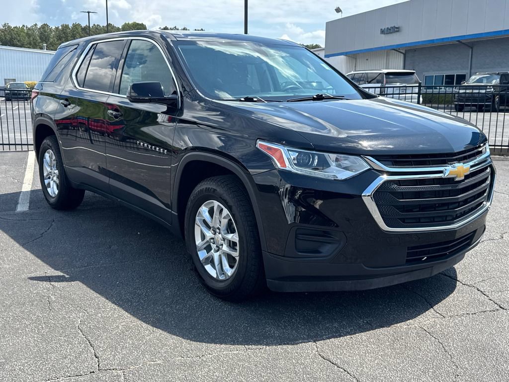 Priced below KBB Fair Purchase Price! Odometer is 11684 miles below market average!Thank you for considering this beautiful 2021 Chevrolet Traverse LS finished in stunning Mosaic Black Metallic with Jet Black Cloth. GO WEST to John Thornton Chevrolet, Celebrating 60 Years, Selling Chevy since 1957! Thank you for your interest in John Thornton Chevrolet! We happily serve Lithia Springs, Douglasville, Smyrna, Marietta, Kennesaw, Viningâs, Atlanta, Dallas, Acworth, Villa Rica and proud to be your Chevrolet Dealer for all of West Georgia by providing quality automotive services and unrivaled customer service. Preferred Equipment Group 1LS, 3.49 Axle Ratio, 3rd row seats: split-bench, 4-Wheel Disc Brakes, 6 Speakers, 8-Passenger Seating (2-3-3 Seating Configuration), ABS brakes, Air Conditioning, Alloy wheels, AM/FM radio, Apple CarPlay/Android Auto, Automatic temperature control, Brake assist, Bumpers: body-color, Compass, Delay-off headlights, Driver door bin, Driver vanity mirror, Dual front impact airbags, Dual front side impact airbags, Electronic Stability Control, Emergency communication system: OnStar and Chevrolet connected services capable, Four wheel independent suspension, Front anti-roll bar, Front Bucket Seats, Front Center Armrest, Front dual zone A/C, Front reading lights, Fully automatic headlights, Heated door mirrors, High-Intensity Discharge Headlights, Illuminated entry, Low tire pressure warning, Occupant sensing airbag, Outside temperature display, Overhead airbag, Overhead console, Panic alarm, Passenger door bin, Passenger vanity mirror, Power door mirrors, Power steering, Power windows, Premium Cloth Seat Trim, Radio data system, Radio: Chevrolet Infotainment System AM/FM Stereo, Rear air conditioning, Rear anti-roll bar, Rear reading lights, Rear window defroster, Rear window wiper, Remote keyless entry, Security system, Speed control, Speed-sensing steering, Split folding rear seat, Spoiler, Steering wheel mounted audio controls, Tachometer, Telescoping steering wheel, Tilt steering wheel, Traction control, Trip computer, Variably intermittent wipers, Voltmeter, and Wheels: 18 Bright Silver Painted Aluminum.Awards:* 2021 IIHS Top Safety Pick with optional front crash prevention and specific headlights