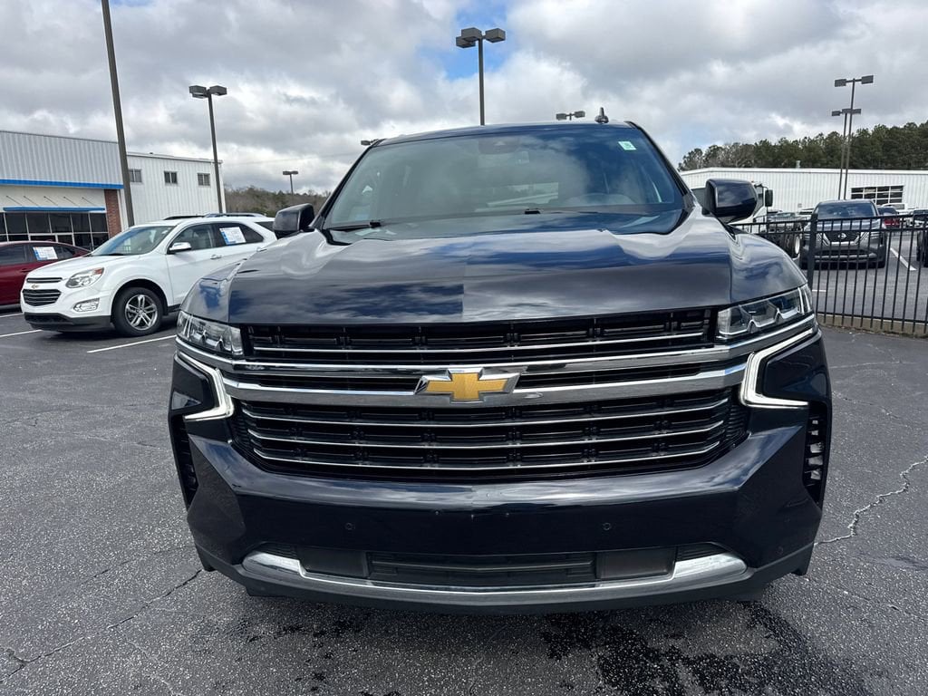 GO WEST to John Thornton Chevrolet, Celebrating 60 Years, Selling Chevy since 1957! Thank you for your interest in John Thornton Chevrolet! We happily serve Lithia Springs, Douglasville, Smyrna, Marietta, Kennesaw, Viningâs, Atlanta, Dallas, Acworth, Villa Rica and proud to be your Chevrolet Dealer for all of West Georgia by providing quality automotive services and unrivaled customer service. License Plate Front Mounting Package, Preferred Equipment Group 1LT (1st & 2nd Row Color-Keyed Carpeted Floor Mats, Auto-Dimming Inside Rear-View Mirror, Bose 9-Speaker Stereo Audio System Feature, Bright Front & Rear Door Sill Plates, Color-Keyed Carpeting Floor Covering, Driver & Front Outboard Passenger Airbags, Enhanced Driver Information Center, Floor Console w/Storage Area, Hands-Free Rear Power Programmable Liftgate, Infotainment Display, LED Daytime Running Lamps, Memory Settings for Driver, Remote Start, SiriusXM Radio w/360L, Universal Home Remote, Wireless Charging, and Wrapped Steering Wheel), 4WD, Black Leather, 10-Way Power Driver & Passenger Seat Adjusters, 3.23 Rear Axle Ratio, 3rd row seats: split-bench, 4-Wheel Disc Brakes, 9 Speakers, ABS brakes, Air Conditioning, Alloy wheels, AM/FM radio: SiriusXM with 360L, Apple CarPlay/Android Auto, Auto High-beam Headlights, Auto-dimming Rear-View mirror, Automatic temperature control, Brake assist, Bumpers: body-color, Compass, Delay-off headlights, Driver door bin, Driver vanity mirror, Dual front impact airbags, Dual front side impact airbags, Electronic Stability Control, Emergency communication system: OnStar and Chevrolet connected services capable, Four wheel independent suspension, Front anti-roll bar, Front Bucket Seats, Front Center Armrest, Front dual zone A/C, Front High-Back Reclining Bucket Seats, Front reading lights, Fully automatic headlights, Garage door transmitter, Heated door mirrors, Heated Driver & Front Passenger Seats, Heated front seats, Illuminated entry, Leather-Appointed Seat Trim, Low tire pressure warning, Memory seat, Navigation System, Occupant sensing airbag, Outside temperature display, Overhead airbag, Overhead console, Panic alarm, Passenger door bin, Passenger vanity mirror, Power door mirrors, Power driver seat, Power Liftgate, Power passenger seat, Power steering, Power windows, Premium audio system: Chevrolet Infotainment 3 Premium, Premium Smooth Ride Suspension, Radio: Chevrolet Infotainment 3 Premium System, Rain sensing wipers, Rear air conditioning, Rear anti-roll bar, Rear reading lights, Rear seat center armrest, Rear window defroster, Rear window wiper, Remote keyless entry, Roof rack: rails only, Security system, Speed control, Speed-sensing steering, Split folding rear seat, Spoiler, Steering wheel mounted audio controls, Tachometer, Telescoping steering wheel, Tilt steering wheel, Traction control, Trip computer, Variably intermittent wipers, Voltmeter, and Wheels: 18 x 8.5 Bright Silver Painted Aluminum.