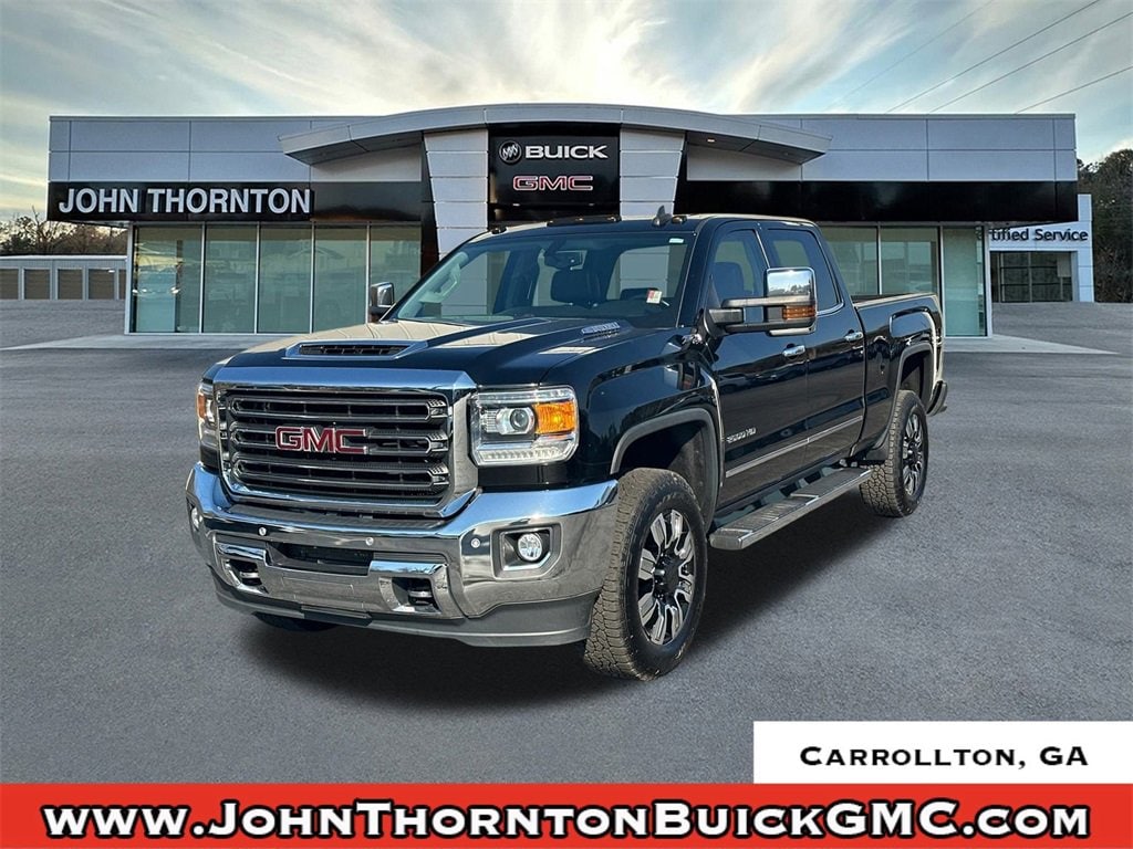 We are your premier Carrollton, GA Cadillac dealership. John Thornton Cadillac Inc. Is family owned, and it is our goal to provide you with an excellent purchase and ownership experience. We also proudly serve Douglasville Cadillac customers. Whether you're searching for a new or used car near Douglasville or Bremen, researching financing options, or looking for a quick quote on a car, truck, or SUV, the friendly, yet professional staff at our Carrollton Cadillac dealership is ready to provide you with all the help you need. We are proud to serve Bremen Cadillac customers. We have served as your premier Cadillac dealer for the entire West Georgia area for over 45 years. Duramax Plus Package (Bluetooth® For Phone, Bose 6 Speaker Sound System, Chrome Power-Adjustable Heated Outside Mirrors, HD Radio, Radio: AM/FM/SiriusXM/HD w/Navigation, Single Slot CD/MP3 Player, SiriusXM Radio, and Ultrasonic Front & Rear Park Assist), Gooseneck/5th Wheel Prep Package, Heavy-Duty Handling/Trailering Suspension Package, Off-Road Suspension Package (Hill Descent Control and Z71 Badging), OnStar & GMC Connected Services Capable (GMC 4G LTE and GMC Connected Access), Preferred Equipment Group 4SA (110-Volt AC Power Outlet, 4.2 Diagonal Color Display Driver Info Center, Auto-Dimming Inside Rear-View Mirror, Chrome Bodyside Moldings, Chrome Door Handles, Chrome Mirror Caps, Color-Keyed Carpeting Floor Covering, Deep-Tinted Glass, Digital Steering Assist, Driver & Front Passenger Vanity Mirror Visors, Dual-Zone Automatic Climate Control, Electric Rear-Window Defogger, Electronic Shift Transfer Case, Front Halogen Fog Lamps, Heated Power-Adjustable Outside Mirrors, Leather-Wrapped Steering Wheel, LED Cargo Box Lighting, Manual Tilt-Wheel/Telescoping Steering Column, Power-Adjustable Pedals For Accelerator & Brake, Rear 60/40 Folding Bench Seat (Folds Up), Rear Wheelhouse Liners, Remote Keyless Entry, Remote Locking Tailgate, Remote Vehicle Starter System, Steering Wheel Audio Controls, Theft Deterrent System (Unauthorized Entry), and Universal Home Remote), Trailering Equipment (Trailer Brake Controller), Allison 1000 6-Speed Automatic, 4WD, Jet Black Leather, 18 Chromed Aluminum Wheels, 3.73 Rear Axle Ratio, 4-Wheel Disc Brakes, 4.10 Rear Axle Ratio, 6 Speakers, 6 Rectangular Chrome Tubular Assist Steps (LPO), ABS brakes, Adjustable pedals, Air Conditioning, Alloy wheels, AM/FM radio: SiriusXM, Auto-dimming door mirrors, Auto-dimming Rear-View mirror, Automatic temperature control, Bodyside moldings, Brake assist, Bumpers: chrome, CD player, Chrome wheels, Compass, Delay-off headlights, Driver door bin, Driver vanity mirror, Dual front impact airbags, Dual front side impact airbags, Electronic Stability Control, Engine Block Heater, Exhaust Brake, Exterior Parking Camera Rear, Floor Mounted Console, Front 40/20/40 Split Bench Seat, Front anti-roll bar, Front Center Armrest w/Storage, Front dual zone A/C, Front fog lights, Front Full Feature Ventilated Bucket Seats, Front reading lights, Front wheel independent suspension, Fully automatic headlights, Garage door transmitter, Heated & Ventilated Front Bucket Seats, Heated door mirrors, Heated Driver and Front Passenger Seats, Heated front seats, Heated Leather Wrapped Steering Wheel, High Idle Switch, High-Intensity Discharge Headlights, Illuminated entry, Leather Appointed Seat Trim, Low tire pressure warning, Memory seat, Occupant sensing airbag, Outside temperature display, Overhead airbag, Overhead console, Panic alarm, Passenger door bin, Passenger vanity mirror, Power door mirrors, Power driver seat, Power passenger seat, Power steering, Power Sunroof, Power windows, Premium audio system: GMC Infotainment System, Radio: AM/FM/SiriusXM/HD, Rear r