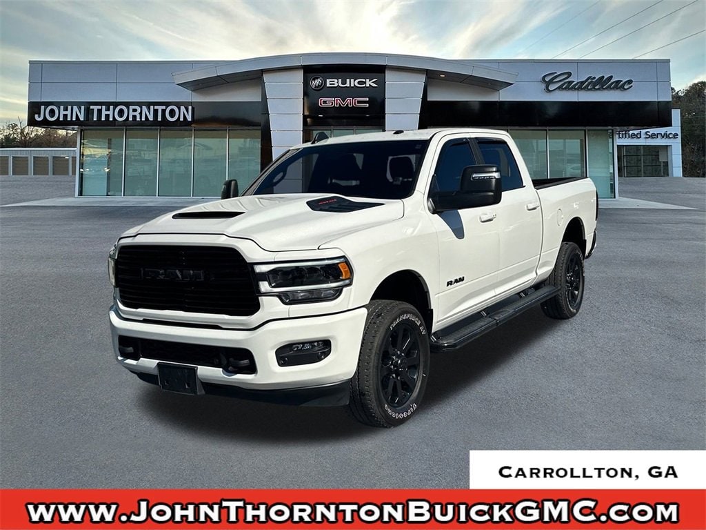 We are your premier Carrollton, GA Cadillac dealership. John Thornton Cadillac Inc. Is family owned, and it is our goal to provide you with an excellent purchase and ownership experience. We also proudly serve Douglasville Cadillac customers. Whether you're searching for a new or used car near Douglasville or Bremen, researching financing options, or looking for a quick quote on a car, truck, or SUV, the friendly, yet professional staff at our Carrollton Cadillac dealership is ready to provide you with all the help you need. We are proud to serve Bremen Cadillac customers. We have served as your premier Cadillac dealer for the entire West Georgia area for over 45 years. Laramie Level B Equipment Group (12 Touchscreen Display, 17 Speaker harman/kardon Premium Sound, 2nd Row In Floor Storage Bins, 4G LTE Wi-Fi Hot Spot, Alexa Built-In, Apple CarPlay, Auto Adjust In Reverse Exterior Mirrors, Auto Dim Exterior Mirror, Auto High Beam Headlamp Control, Auto Power-Folding Mirrors, Auto-Dimming Exterior Passenger Mirror, Blind Spot & Cross Path Detection, Center Hub, Chrome Exterior Mirrors, Connected Travel & Traffic Services, Connectivity - US/Canada, Disassociated Touchscreen Display, Exterior Mirrors Courtesy Lamps, Exterior Mirrors w/Heating Element, Exterior Mirrors w/Memory, Exterior Mirrors w/Supplemental Signals, Foam Bottle Insert (Door Trim Panel), For Details, Visit DriveUconnect.com, For More Info, Call 800-643-2112, Forward & Reverse Utility Lights, Front LED Fog Lamps, Global Telematics Box Module (TBM), Google Android Auto, GPS Antenna Input, GPS Navigation, HD Radio, Heated Second Row Seats, Integrated Voice Command w/Bluetooth, LED Reflector Headlamps, LED Tail Lamps, Mirror Running Lights, Off-Road Information Pages, ParkSense Front/Rear Park Assist System, Power Adjust Mirrors, Power Adjustable Convex Aux Mirrors, Power Adjustable Pedals w/Memory, Power Heated Fold Telescopic Mirrors w/Memory, Power Telescoping Mirrors, Radio: Uconnect 5 Nav w/12.0 Display, Rain Sensitive Windshield Wipers, Rear Power Sliding Window, Rear Window Defroster, Remote Tailgate Release, Selectable Tire Fill Alert, SiriusXM Radio Service, SiriusXM w/360L, Trailer Tow Pages, and Wheels: 18 x 8.0 Polished Aluminum), Night Edition (Black Exterior Truck Badging, Black Headlamp Bezels, Black Interior Accents, Black Ram Head Tailgate Badge, Black Tail Lamp Bezels, Black Wheel Center Hub, Body Color Grille Surround, Gloss Black Grille Billets/Accents, Sport Performance Hood, and Wheels: 20 x 8.0 Black Painted Aluminum), Quick Order Package 2GH Laramie, 10 Speakers, 115V Auxiliary Rear Power Outlet, 2 Way Rear Headrest Seat, 3.73 Axle Ratio, 4 Way Front Headrests, 4-Wheel Disc Brakes, 5th Wheel/Gooseneck Towing Prep Group, ABS brakes, Active Noise Control System, Air Conditioning, Alloy wheels, AM/FM radio: SiriusXM with 360L, Anti-Spin Differential Rear Axle, Apple CarPlay/Android Auto, Automatic temperature control, Brake assist, Bumpers: body-color, Cluster 12 TFT Color Display, Compass, Delay-off headlights, Driver door bin, Driver vanity mirror, Dual front impact airbags, Dual front side impact airbags, Electronic Stability Control, Electronically Controlled Throttle, Front anti-roll bar, Front Center Armrest w/Storage, Front dual zone A/C, Front License Plate Bracket, Front reading lights, Front Seat Back Map Pockets, Fully automatic headlights, Garage door transmitter, Heated door mirrors, Heated Front Seats, Heated front seats, Heated Steering Wheel, Heated steering wheel, Illuminated entry, Leather steering wheel, Leather Trim 40/20/40 Bench Seat, Low tire pressure warning, MOPAR Front & Rear Rubber Floor Mats, MOPAR Spray In Bedliner, Navigation System, Occupant sensing airbag, Outside temperature display, Overhead airbag, Overhead console, Painted Flat Wheel-to-