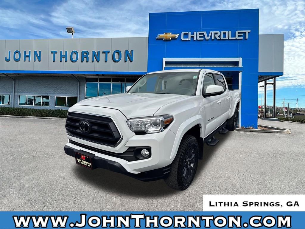 Priced below KBB Fair Purchase Price! Odometer is 17138 miles below market average!Thank you for considering this beautiful 2022 Toyota Tacoma finished in stunning with Cloth. GO WEST to John Thornton Chevrolet, Celebrating 60 Years, Selling Chevy since 1957! Thank you for your interest in John Thornton Chevrolet! We happily serve Lithia Springs, Douglasville, Smyrna, Marietta, Kennesaw, Viningâs, Atlanta, Dallas, Acworth, Villa Rica and proud to be your Chevrolet Dealer for all of West Georgia by providing quality automotive services and unrivaled customer service. 4WD, 6 Speakers, ABS brakes, Air Conditioning, Alloy wheels, AM/FM radio: SiriusXM, Anti-whiplash front head restraints, Apple CarPlay/Android Auto, Auto High-beam Headlights, Auto-dimming Rear-View mirror, Automatic temperature control, Axle Ratio: 3.91, Brake assist, Bumpers: body-color, Driver door bin, Dual front impact airbags, Dual front side impact airbags, Electronic Stability Control, Emergency communication system: Safety Connect with 1-year trial, Exterior Parking Camera Rear, Fabric Seat Trim (FC), Front anti-roll bar, Front Bucket Seats, Front Center Armrest, Front dual zone A/C, Front fog lights, Front reading lights, Front Seats, Front wheel independent suspension, Illuminated entry, Knee airbag, Low tire pressure warning, Occupant sensing airbag, Outside temperature display, Overhead airbag, Overhead console, Panic alarm, Passenger door bin, Power door mirrors, Power driver seat, Power steering, Power windows, Radio: AM/FM/HD Radio, Rear step bumper, Remote keyless entry, Speed control, Speed-sensing steering, Split folding rear seat, Steering wheel mounted audio controls, Tachometer, Telescoping steering wheel, Tilt steering wheel, Traction control, Trip computer, Variably intermittent wipers, and Wheels: 16 x 7J Silver Alloy.4WD.