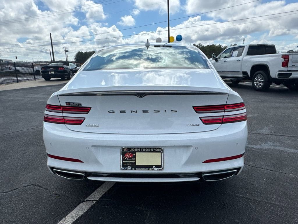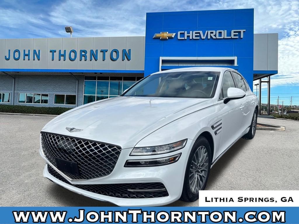 Priced below KBB Fair Purchase Price!Thank you for considering this beautiful 2023 Genesis G80 2.5T finished in stunning Uyuni White with Obsidian Black w/Gray Stitch w/Leather Seating Surfaces. GO WEST to John Thornton Chevrolet, Celebrating 60 Years, Selling Chevy since 1957! Thank you for your interest in John Thornton Chevrolet! We happily serve Lithia Springs, Douglasville, Smyrna, Marietta, Kennesaw, Viningâs, Atlanta, Dallas, Acworth, Villa Rica and proud to be your Chevrolet Dealer for all of West Georgia by providing quality automotive services and unrivaled customer service. 12 Speakers, 4-Wheel Disc Brakes, ABS brakes, Air Conditioning, Alloy wheels, AM/FM radio: SiriusXM, Android Auto & Apple CarPlay, Anti-whiplash front head restraints, Auto High-beam Headlights, Auto tilt-away steering wheel, Auto-dimming door mirrors, Auto-dimming Rear-View mirror, Automatic temperature control, Bumpers: body-color, Compass, Delay-off headlights, Driver door bin, Driver vanity mirror, Dual front impact airbags, Dual front side impact airbags, Electronic Stability Control, Emergency communication system: Genesis Connected Services, Exterior Parking Camera Rear, Four wheel independent suspension, Front anti-roll bar, Front Bucket Seats, Front Center Armrest, Front dual zone A/C, Front reading lights, Fully automatic headlights, Garage door transmitter: HomeLink, Heated door mirrors, Heated Front Bucket Seats, Heated front seats, Illuminated entry, Knee airbag, Leather steering wheel, Leatherette Seating Surfaces, Low tire pressure warning, Memory seat, Navigation System, Occupant sensing airbag, Outside temperature display, Overhead airbag, Overhead console, Panic alarm, Passenger door bin, Passenger vanity mirror, Power door mirrors, Power driver seat, Power passenger seat, Power steering, Power windows, Radio data system, Radio: AM/FM/HD/SiriusXM Audio System, Rain sensing wipers, Rear anti-roll bar, Rear reading lights, Rear seat center armrest, Rear side impact airbag, Rear window defroster, Remote keyless entry, Security system, Speed control, Speed-sensing steering, Speed-Sensitive Wipers, Steering wheel memory, Steering wheel mounted audio controls, Tachometer, Telescoping steering wheel, Tilt steering wheel, Traction control, Trip computer, Turn signal indicator mirrors, Variably intermittent wipers, and Wheels: 18x8.0J Alloy.